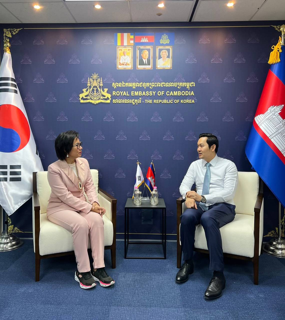 (កូរ៉េខាងត្បូង)៖ លោក ឃួន ផុនរតនៈ ឯកអគ្គរាជទូតកម្ពុជាប្រចាំសាធារណរដ្ឋកូរ៉េ បានទទួលជួបសម្តែងការគួរសម និងសំណេះសំណាលជាមួយឧកញ៉ា កែវ មុំ អគ្គនាយិកាសហគ្រាសផលិតនំស្រួយលីលី នៅព្រឹកថ្ងៃទី ៣ ខែកុម្ភៈ ឆ្នាំ២០២៦ នៅស្ថានទូតកម្ពុជាក្នុងទីក្រុងសេអ៊ូល។