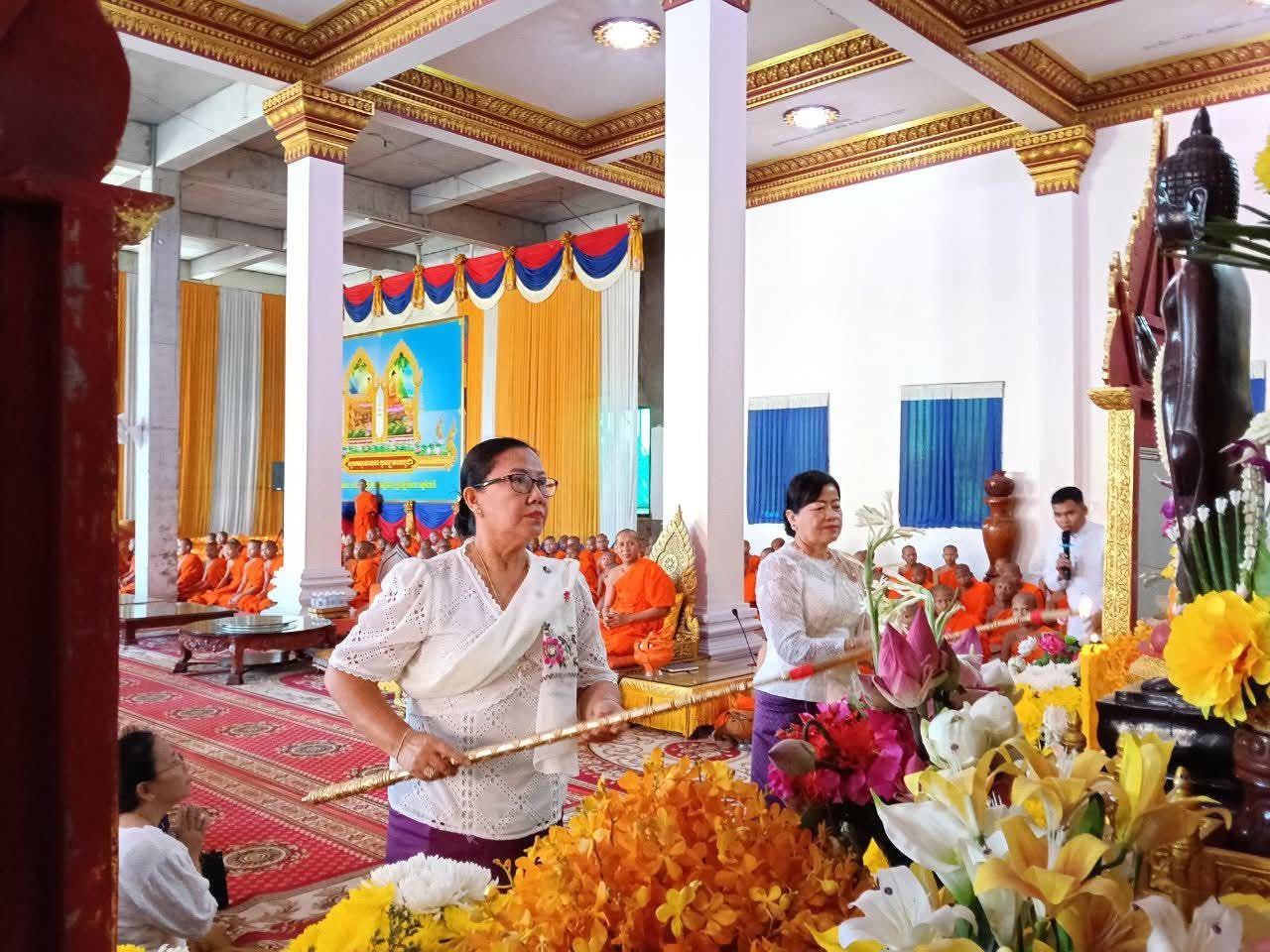 នាឱកាសនោះស្រីបានឧទ្ទិសកុសលផលបុណ្យដែលកើតពីសទ្ធាជ្រះថ្លាទាំងនេះ ជូនចំពោះញាតិការទាំងប្រាំពីរសន្តាន ឥស្សរជន និងយុទ្ធជន វីរកងទ័ព វីរនគរបាលដែលបានពលីជីវិតដើម្បីជាតិមាតុភូមិ ដែលបានទទួលមរណកាលទៅកាន់លោកខាងមុខ សូមឱ្យជួបប្រកបតែវិបុលសុខគ្រប់ប្រការ និងទៅកាន់សុខគតិភពកុំបីឃ្លៀងឃ្លាតឡើយ។