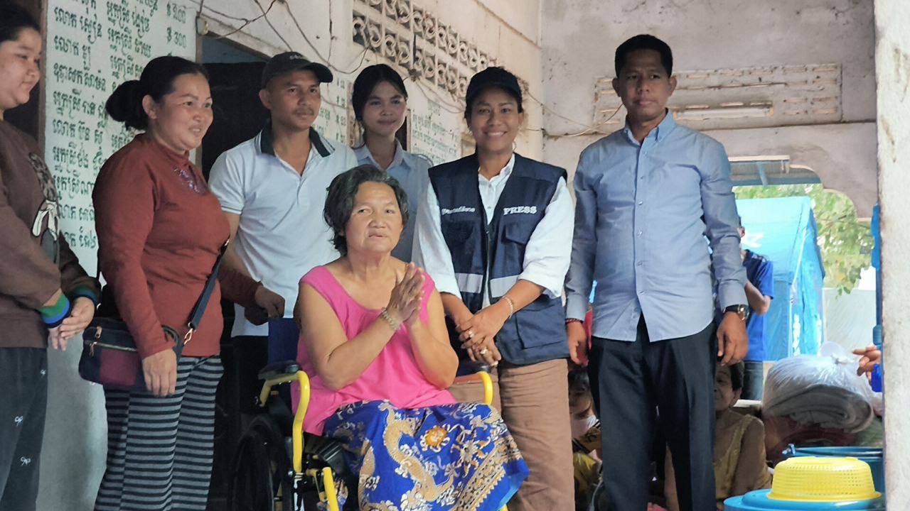 រដ្ឋមន្ត្រី នេត្រ ភក្ត្រា ផ្តល់រទេះរុញជូនអ៊ំស្រីជាជនភៀសសឹកមកពីភូមិព្រៃចាន់ ដែលរអិលជើងដួលប្រេះឆ្អឹងត្រកៀក