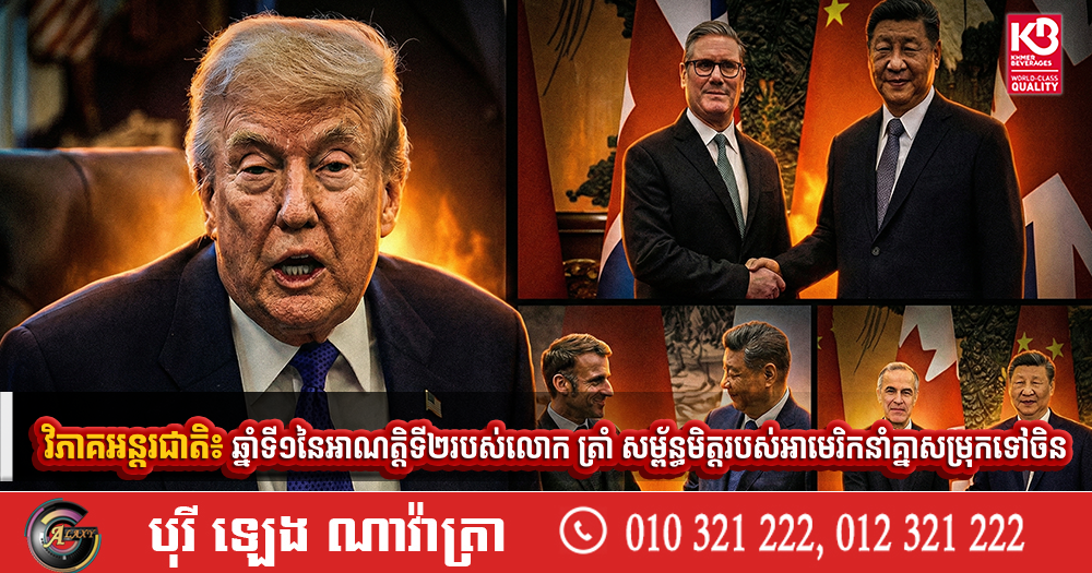 (ប៉េកាំង)៖ ក្នុងពេលដែលប្រធានាធិបតីអាមេរិក លោក ដូណាល់ ត្រាំ បានបង្កភាពរកាំរកូសជាមួយសម្ព័ន្ធមិត្តខ្លួនឯង ក្នុងនោះរួមមានទាំងការគំរាមគ្រប់គ្រងដែនដី Greenland និងការធ្វើសង្រ្គាមពាណិជ្ជកម្មជាមួយ កាណាដា ចិនឯណោះវិញបានចាប់យកឱកាសស្ដារទំនាក់ទំនងជាមួយសម្ព័ន្ធមិត្តសំខាន់ៗរបស់សហរដ្ឋអាមេរិក ដោយលោក ស៊ី ជីនពីង មមាញឹកយ៉ាងខ្លាំងកាលពីប៉ុន្មានសប្ដាហ៍ថ្មីៗនេះក្នុងការទទួលស្វាគមន៍ ដំណើរទស្សនកិច្ចរបស់មេដឹកនាំលោកខាងលិចទាំងនោះដែលកំពុងព្យាយាមស្ដារឡើងវិញដូចគ្នានូវទំនាក់ទំនង និងកិច្ចសហប្រតិបតិ្តឱ្យកាន់តែស៊ីជម្រៅជាមួយមហាអំណាចសេដ្ឋកិច្ចលេខ២ នៅលើពិភពលោក។