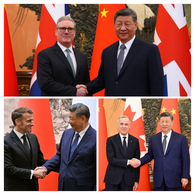 មេដឹកនាំនៃប្រទេសជាសម្ព័ន្ធមិត្តជិតស្និទ្ធមួយចំនួនរបស់សហរដ្ឋអាមេរិកដូចជានាយករដ្ឋមន្ត្រីអង់គ្លេស លោក Keir Starmer និងនាយករដ្ឋមន្ត្រីកាណាដា លោក Mark Carney ព្រមទាំងនាយករដ្ឋមន្ត្រីហ្វាំងឡង់ លោក Petteri Orpo បានបំពេញទស្សនកិច្ចទៅកាន់ទីក្រុងប៉េកាំង ជួបលោក ស៊ី ជីនពីងកាលពីខែមករា។ ប្រធានាធិបតីបារាំង លោក អេម៉ានុយអែល ម៉ាក្រុង ក៏បានបំពេញទស្សនកិច្ចទៅកាន់ប៉េកាំងផងដែរ កាលពី ខែធ្នូកន្លងទៅ ខណៈអធិការបតីអាល្លឺម៉ង់ លោក Friedrich Merz ត្រូវបានរំពឹងថានឹងធ្វើទស្សនកិច្ចទៅចិនឆាប់ៗ។ សម្រាប់ចិន ដំណើរទស្សនកិច្ចទាំងនេះជាសញ្ញាមួយបង្ហាញថាយុគសម័យមួយនៃការជជែកពី ការកាត់ផ្ដាច់ទំនាក់ទំនងសេដ្ឋកិច្ចចេញពីចិនកំពុងថមថយសន្ទុះ ហើយមេដឹកនាំលោកខាងលិចនៅចុងបញ្ចប់នៅតែសម្លឹងឃើញចិនជាដៃគូមួយគួរឱ្យទុកចិត្តបាន ផ្ទុយពីសហរដ្ឋអាមេរិកនៅក្រោមការដឹកនាំរបស់លោក ដូណាល់ ត្រាំ។