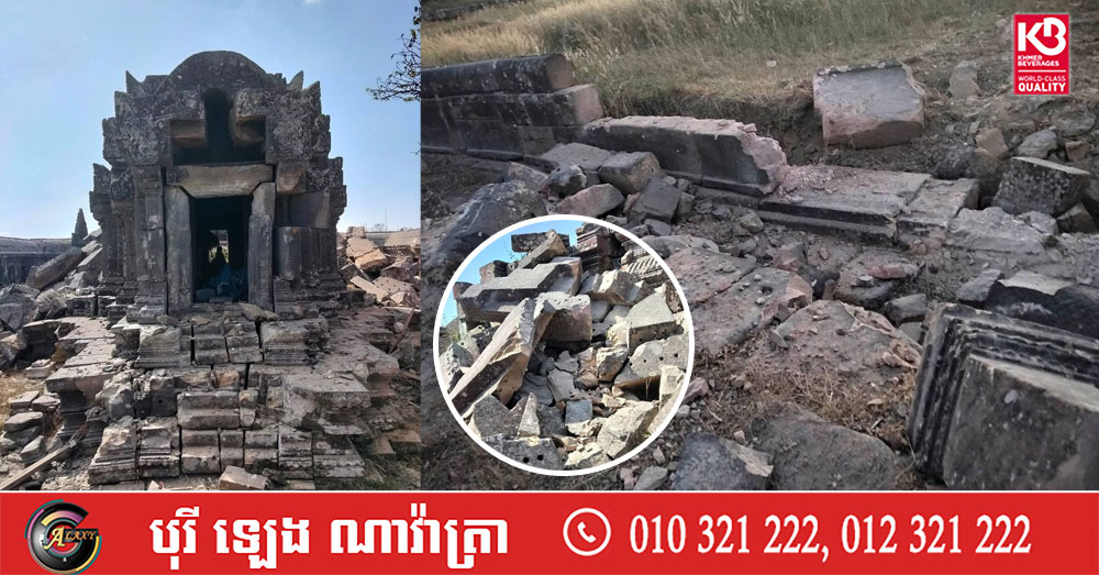 (ភ្នំពេញ)៖ ជម្លោះព្រំដែនរវាងកម្ពុជានិងថៃបានធ្វើឱ្យប៉ះពាល់ដល់ការអភិរក្សសម្បត្តិវប្បធម៌ជាតិ ដោយក្នុងនោះភាគីថៃបានធ្វើឱ្យខូចខាតប្រាសាទព្រះវិហារដែលជាបេតិកភណ្ឌពិភពលោក តំបន់ជុំវិញប្រាសាទព្រះវិហារ ប្រាសាទតាក្របី ប្រាសាទខ្នារ ប្រាសាទតាមាន់ និងបុរាណដ្ឋានផ្សេងៗទៀតនៅតាមព្រំដែន រួមជាមួយនឹងការព្យាយាមដណ្ដើមយកប្រាសាទបុរាណខ្មែរទៅគ្រប់គ្រង។