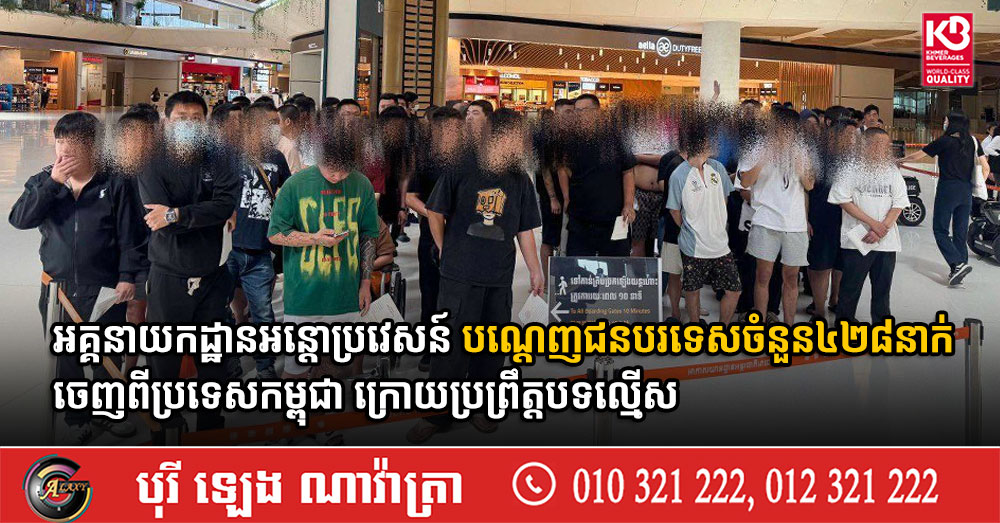 អគ្គនាយកដ្ឋានអន្ដោប្រវេសន៍ បណ្ដេញជនបរទេសចំនួន៤២៨នាក់ ចេញពីប្រទេសកម្ពុជា ក្រោយប្រព្រឹត្តបទល្មើស
