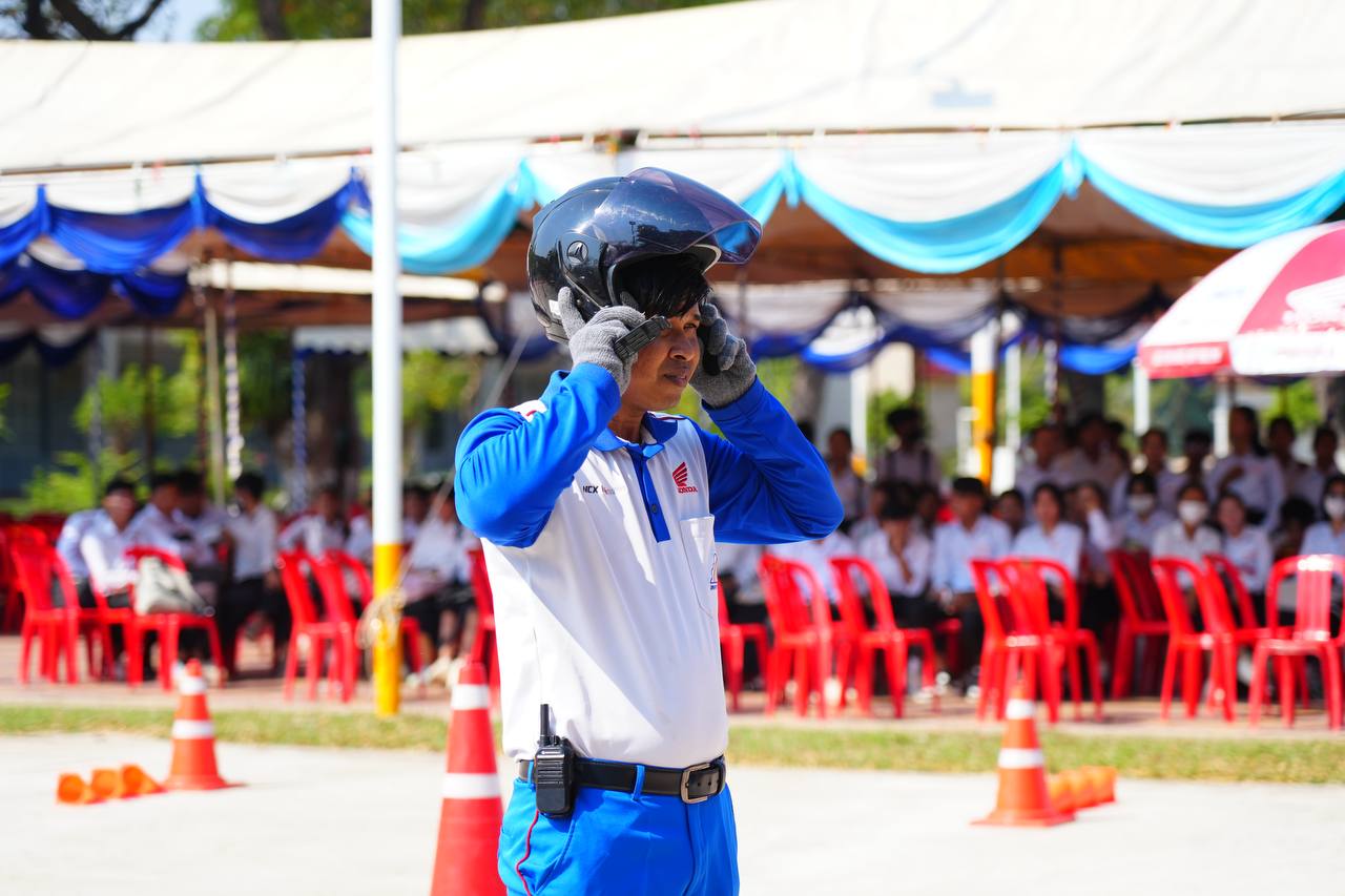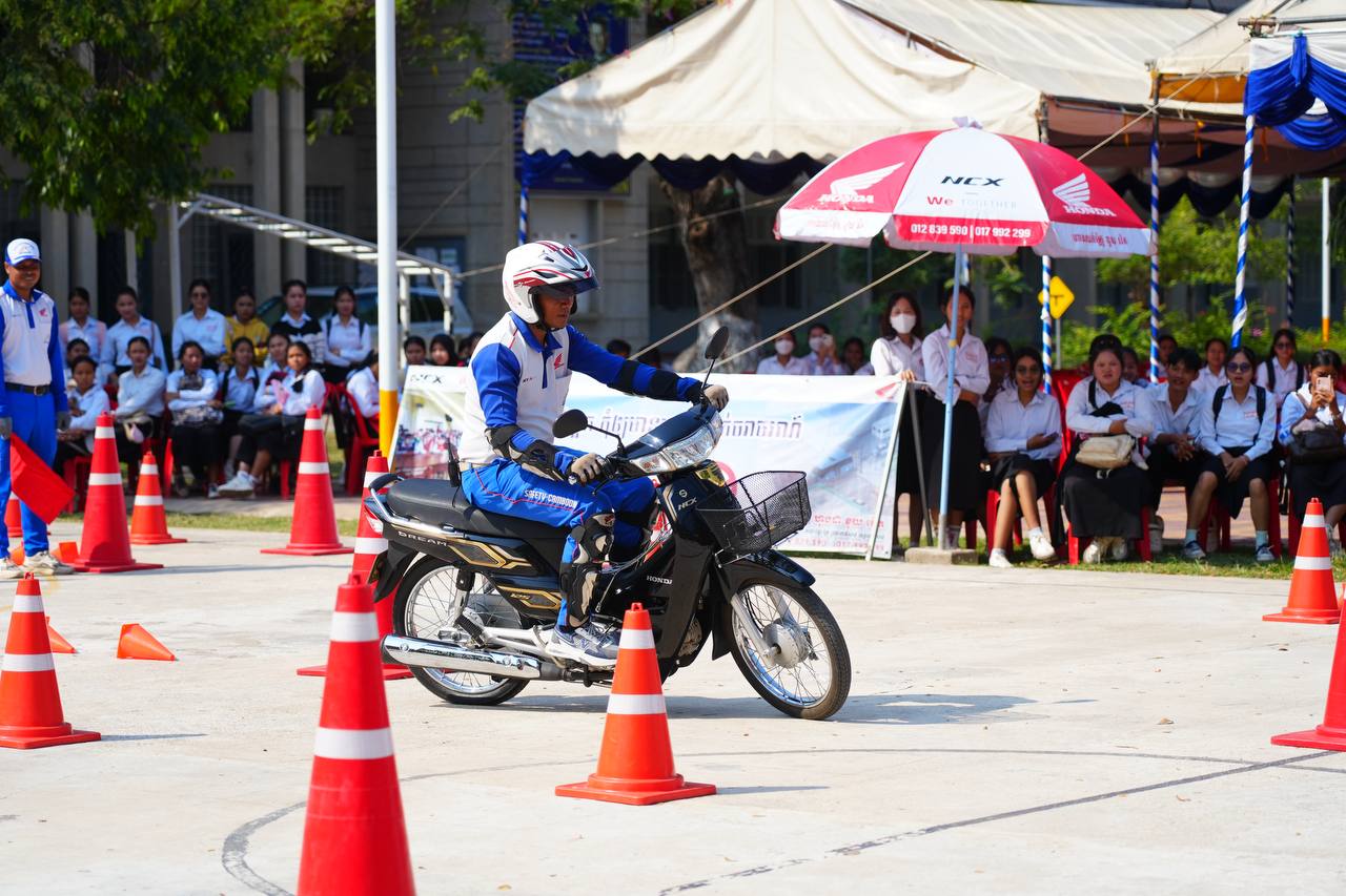 ក្នុងឱកាសនោះ ក៏មានការបង្ហាត់បង្ហាញជាក់ស្តែង ដែលបង្រៀនដោយគ្រូបង្គោល នៃក្រុមហ៊ុន អិន ស៊ី អិច ហុងដា (NCX Honda) អំពីច្បាប់ចរាចរណ៍ផ្លូវគោក និងផ្តល់នូវជំនាញបើកបរបានត្រឹឹមត្រូវ និងមានសុវត្ថិភាព ជូនសិស្សានុសិស្ស នៅទីលានអនុវត្តដៃចង្កូត ព្រមទាំងប្រគល់វត្ថុអនុស្សាវរីយ៍ ជាមួកការពារ អាវយឺត និងប្រេងម៉ាស៊ីនម៉ូតូផងដែរ៕