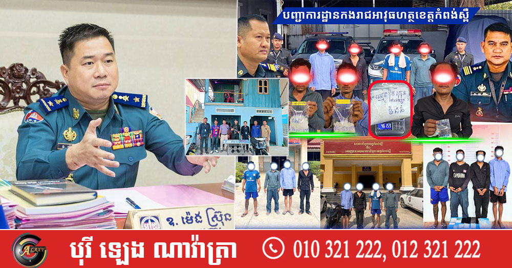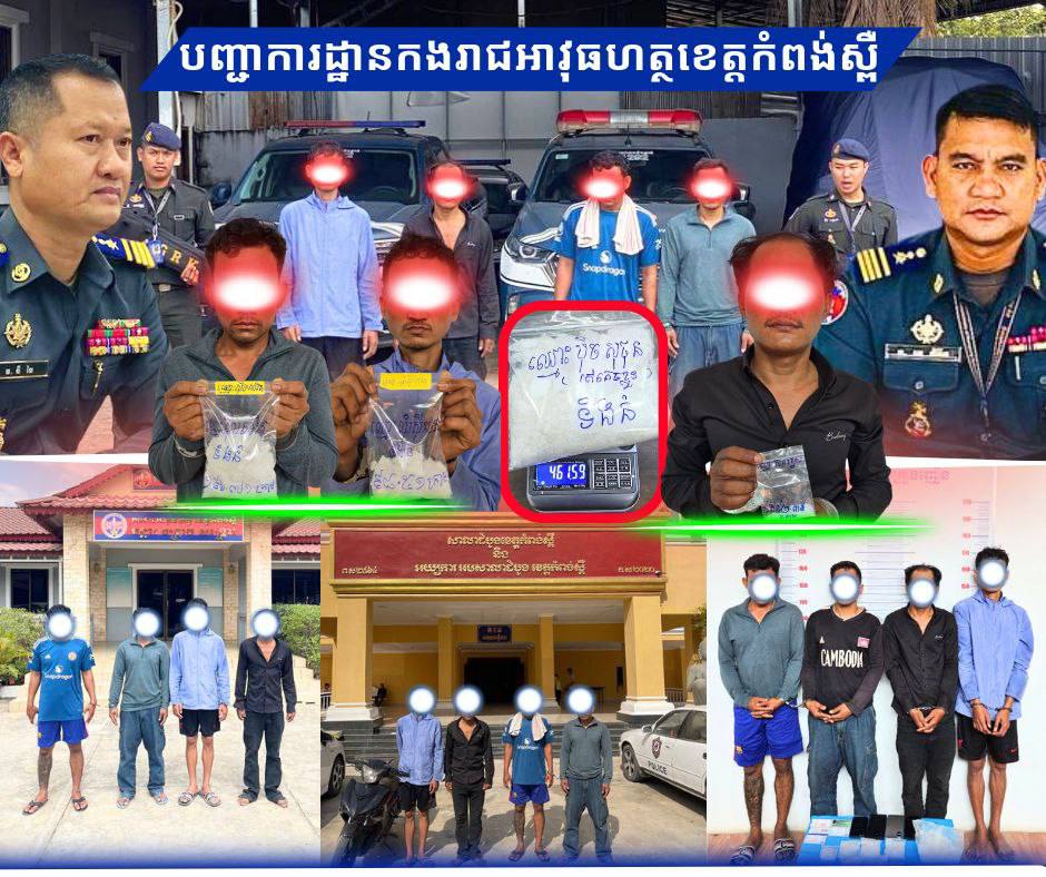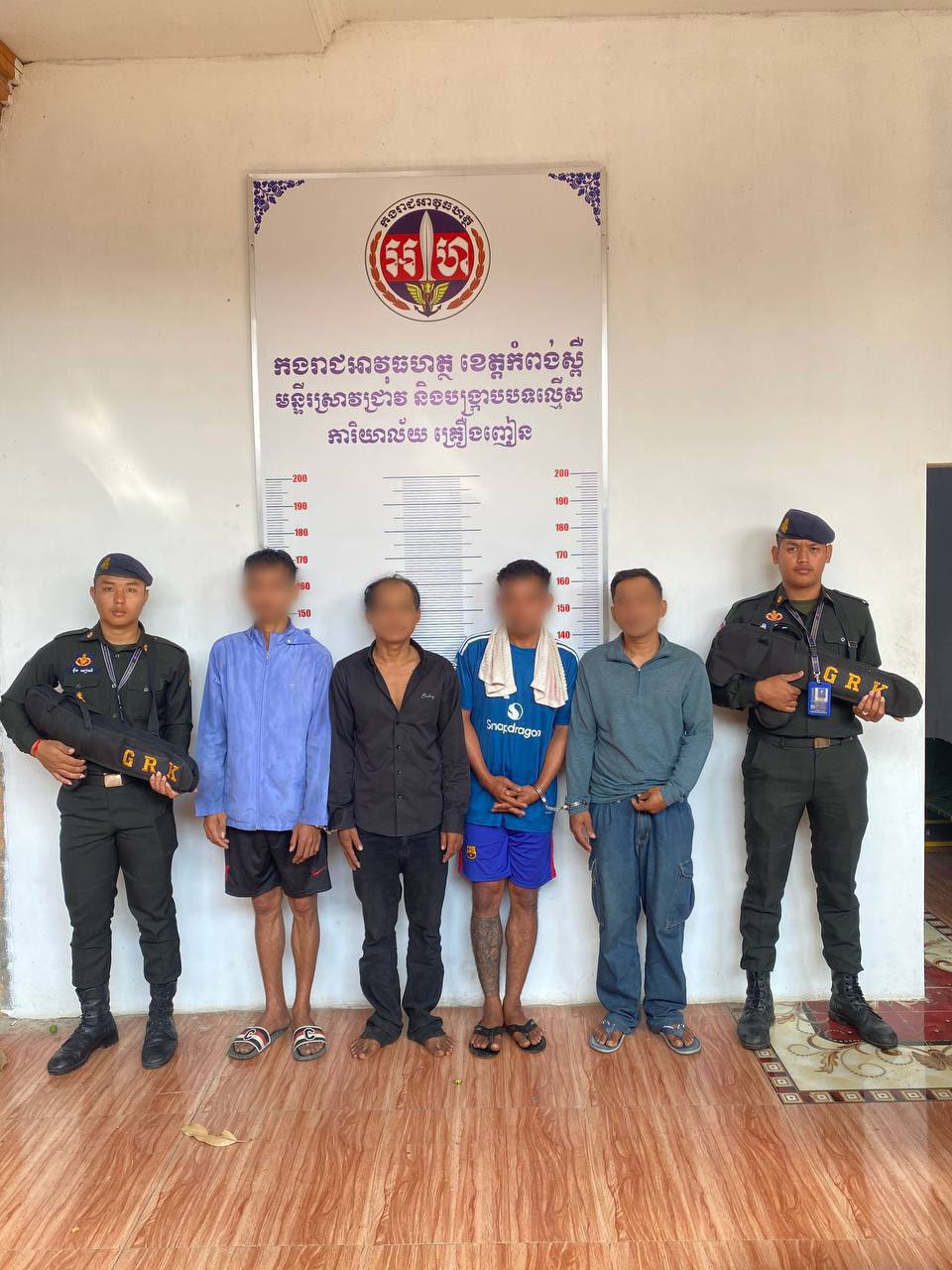 គ្រឿងញៀនជិត១គីឡូក្រាម ត្រូវកម្លាំងអាវុធហត្ថខេត្តកំពង់ស្ពឺ បើកប្រតិបត្តិការបង្ក្រាប ដោយចាប់ខ្លួនជនសង្ស័យចំនួន៤នាក់ (Video inside)