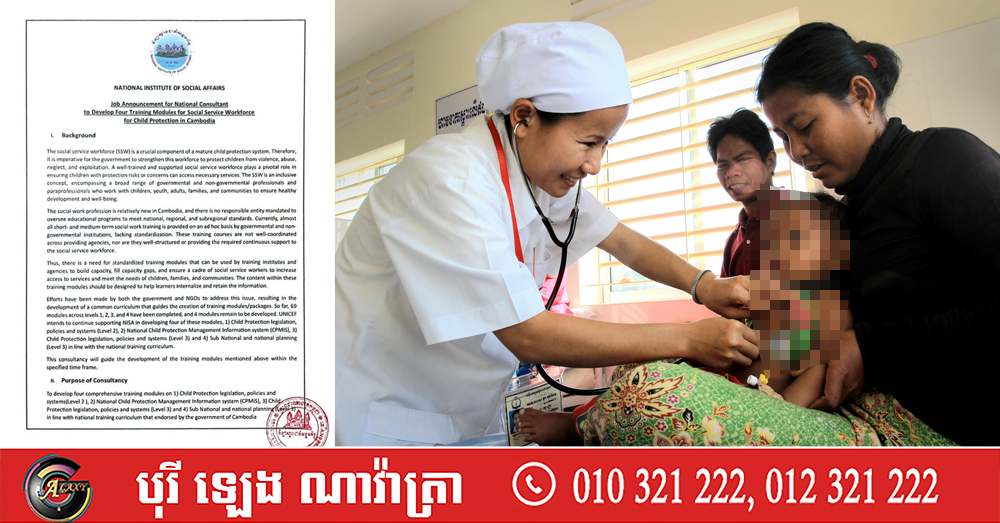 វិទ្យាស្ថានជាតិសង្គមកិច្ច ប្រកាសជ្រើសរើសទីប្រឹក្សាជាតិ ដើម្បីរៀបចំអភិវឌ្ឍន៍ម៉ូឌុល ស្តីពីការអភិវឌ្ឍន៍កម្លាំងសេវាសង្គមផ្តោតលើកិច្ចការពារកុមារ