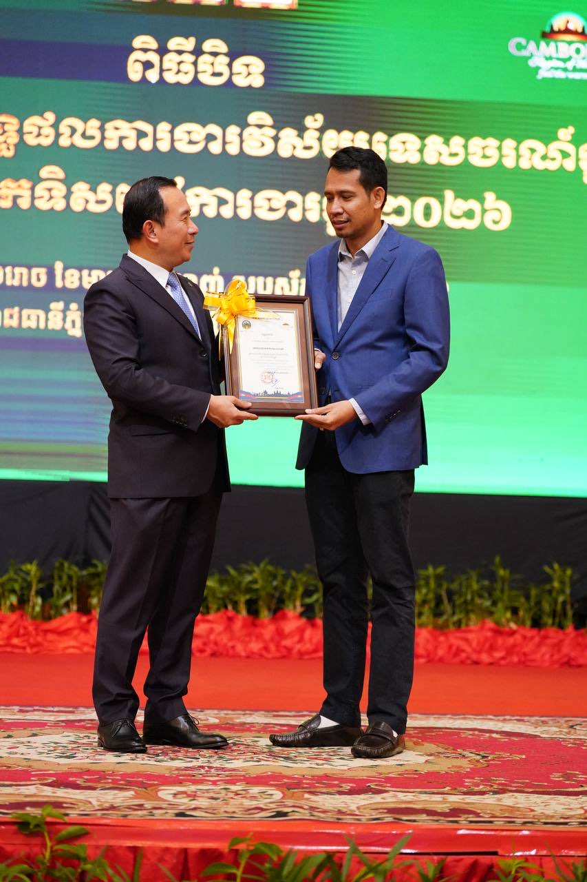 ការប្រគល់បណ្ណសរសើរនេះ បានធ្វើឡើងក្នុងឱកាសនៃពិធីសន្និបាតបូកសរុបលទ្ធផលការងារវិស័យទេសចរណ៍ឆ្នាំ២០២៥ និងលើកទិសដៅការងារឆ្នាំ២០២៦ ក្រោមអធិបតីភាព លោក ហួត ហាក់ រដ្ឋមន្ត្រីក្រសួងទេសចរណ៍ នៅសណ្ឋាគារសុខាភ្នំពេញ។