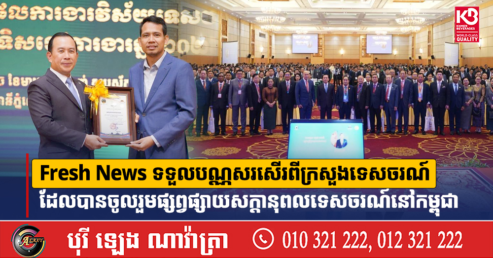 Fresh News ទទួលបណ្ណសរសើរពីក្រសួងទេសចរណ៍ ដែលបានចូលរួមផ្សព្វផ្សាយសក្តានុពលទេសចរណ៍នៅកម្ពុជា