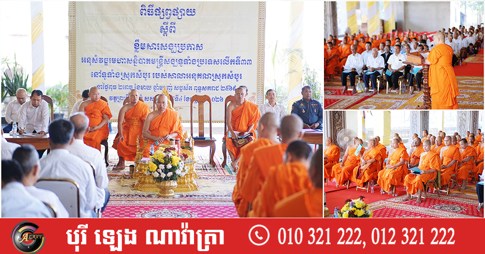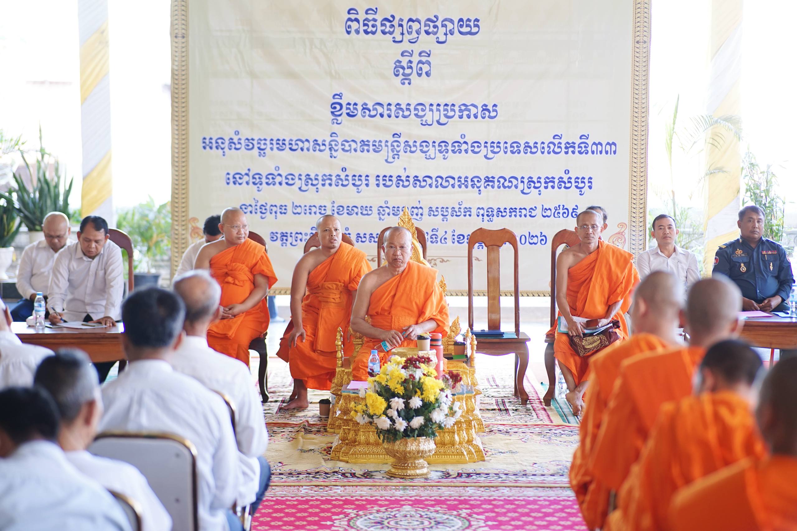 (ក្រចេះ)៖ នៅថ្ងៃពុធ ទី៤ ខែកុម្ភៈ ឆ្នាំ២០២៦នេះ សាលាអនុគណស្រុកសំបូរ បានរៀបចំពិធីផ្សព្វផ្សាយខ្លឹមសារសង្ឃប្រកាសអនុសំវច្ឆរមហាសន្និបាតមន្ត្រីសង្ឃទូទាំងប្រទេសលើកទី៣៣ នៅទូទាំងស្រុកសំបូររបស់សាលាអនុគណស្រុកសំបូរ។