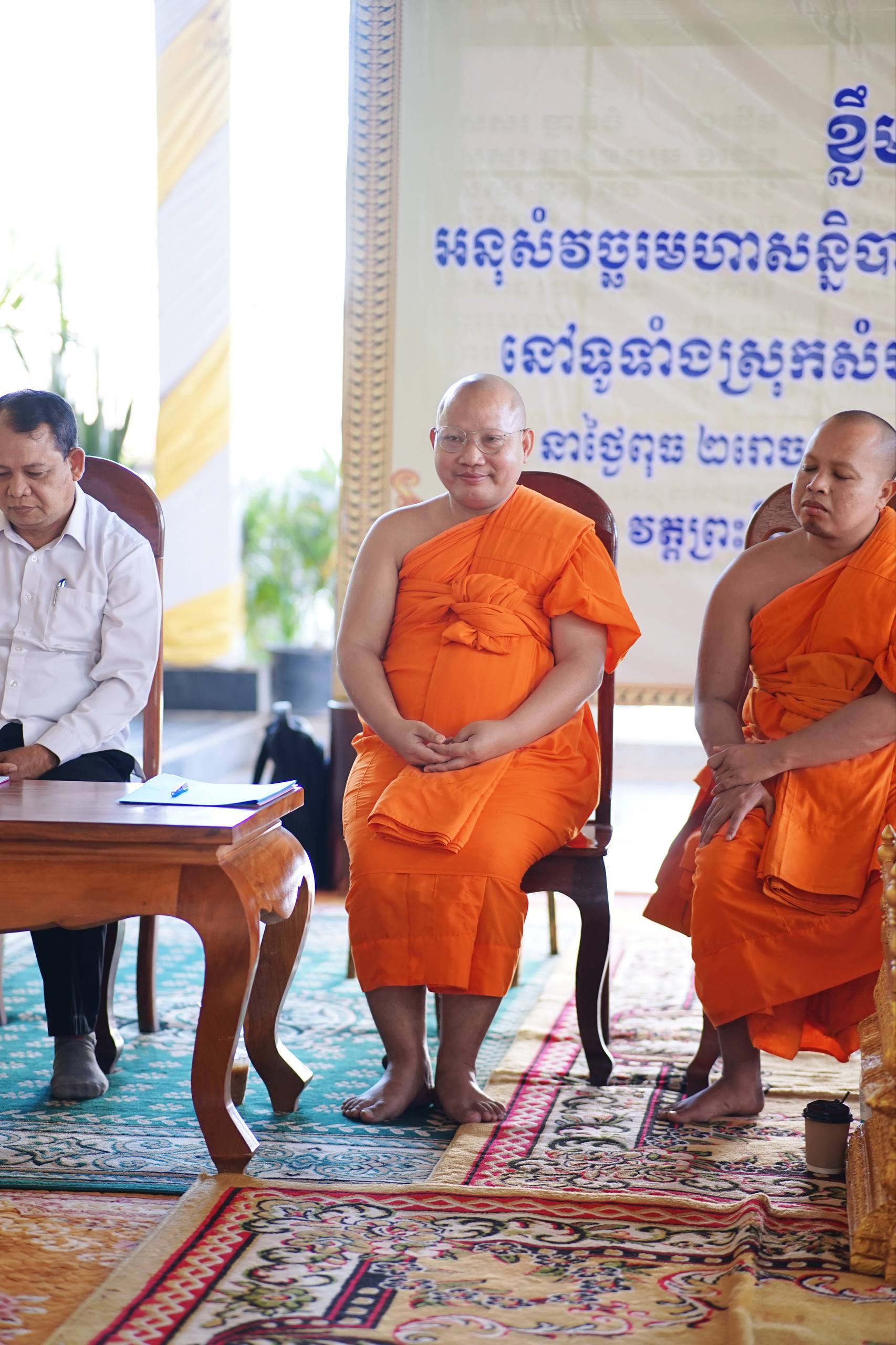 ពិធីនេះប្រព្រឹត្តទៅក្រោមអធិបតីភាព ព្រះញាណសារណវេទី លឹម ប៊ុនថុន ព្រះរាជាគណៈកិត្តិយស នៃព្រះរាជាណាចក្រកម្ពុជា ព្រះវិន័យមេធា ព្រះបាឡាត់គណខេត្តក្រចេះ តំណាងព្រះមេគណខេត្តក្រចេះ លោក ស៊ូ សែ ប្រធានមន្ទីរធម្មការ និងសាសនាខេត្តក្រចេះ និងលោក គង់ មេត្តា អភិបាល នៃគណៈអភិបាលស្រុកសំបូរ។ ពិធីក៏មានការនិមន្តចូលរួមពីសំណាក់ព្រះសិរីសម្ភារ៍ បណ្ឌិត អេង ផល្លា ព្រះរាជាគណៈកិត្តិយស នៃព្រះរាជាណាចក្រកម្ពុជា ព្រះគ្រូវិសោធបញ្ញា ព្រះអនុគណស្រុកសំបូរ ខេត្តក្រចេះ និងជាព្រះចៅអធិការវត្តព្រះវិហារធំសសរ១០០ និងមានការនិមន្ត និងអញ្ជើញចូលរួមពីសហការីមន្ត្រីសង្ឃសាលាគណខេត្តក្រចេះ មន្ត្រីសង្ឃ ព្រះចៅអធិការ ភិក្ខុ សាមណេរ សមណសិស្ស-សិស្ស លោកអាចារ្យ គណៈកម្មការទាំង២៧វត្ត នៃសាលាអនុគណស្រុកសំបូរ។