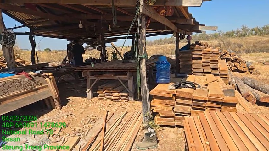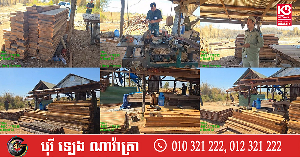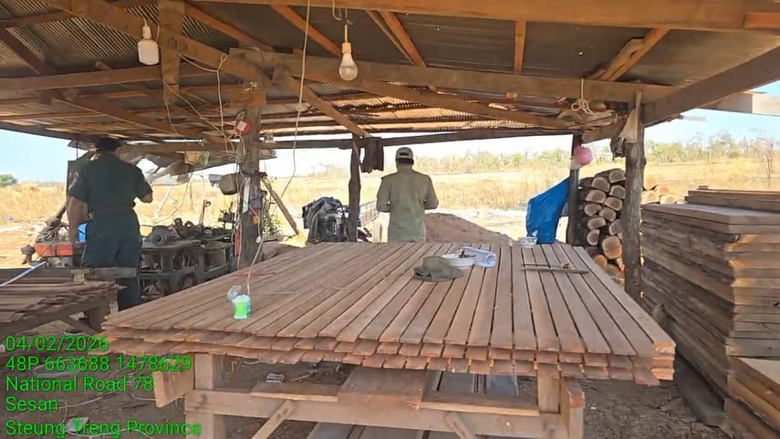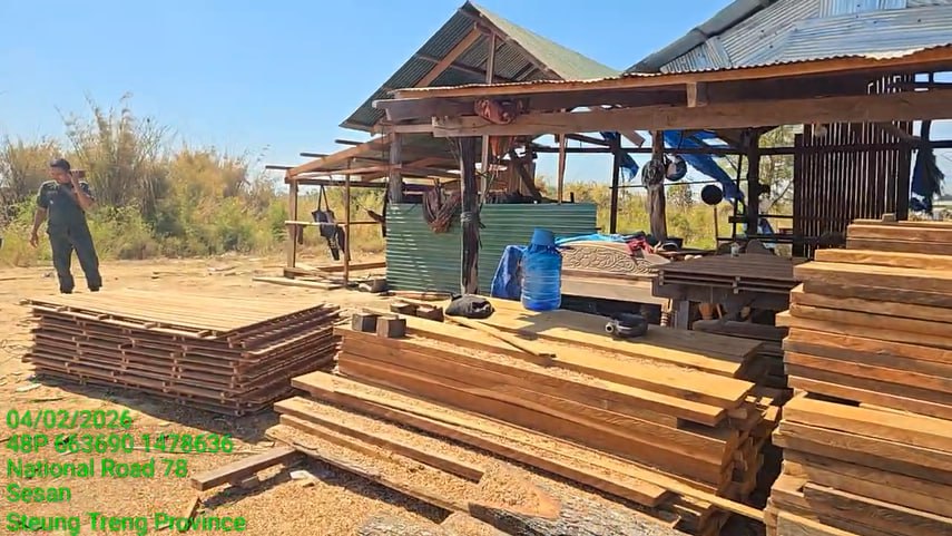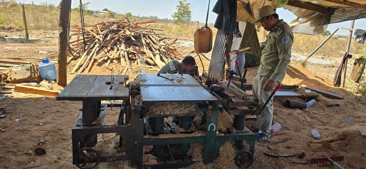 កម្លាំងចម្រុះខេត្តស្ទឹងត្រែង ចុះបង្ក្រាបសិប្បកម្មកែច្នៃឈើខុសច្បាប់មួយកន្លែង ដកហូតបានវត្ថុតាង និងឧបករណ៍កែច្នៃជាច្រើន