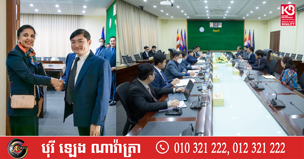 (ភ្នំពេញ)៖ នារសៀលថ្ងៃទី៤ ខែកុម្ភៈ ឆ្នាំ២០២៦ នៅទីស្តីការក្រសួង លោក ហេង សួរ រដ្ឋមន្ត្រីក្រសួងការងារ និងបណ្ដុះបណ្ដាលវិជ្ជាជីវៈ បានទទួលជួបពិភាក្សាការងារជាមួយលោកស្រី យ៉ាស្មីន ស៊ីឌីគី (Yasmin Siddiqi) នាយិកាធនាគារអភិវឌ្ឍន៍អាស៊ីប្រចាំកម្ពុជា (ADB) ដើម្បីបន្តជំរុញកិច្ចសហប្រតិបត្តិការលើការអប់រំបណ្ដុះបណ្ដាលបច្ចេកទេស និងវិជ្ជាជីវៈ និងការអភិវឌ្ឍជំនាញនៅកម្ពុជាឱ្យកាន់តែមានប្រសិទ្ធភាព។