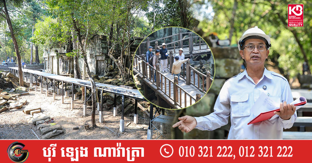 អាជ្ញាធរជាតិអប្សរា កំពុងជួសជុលស្ពានឈើថ្មើរជើង នៅប្រាសាទបេងមាលា