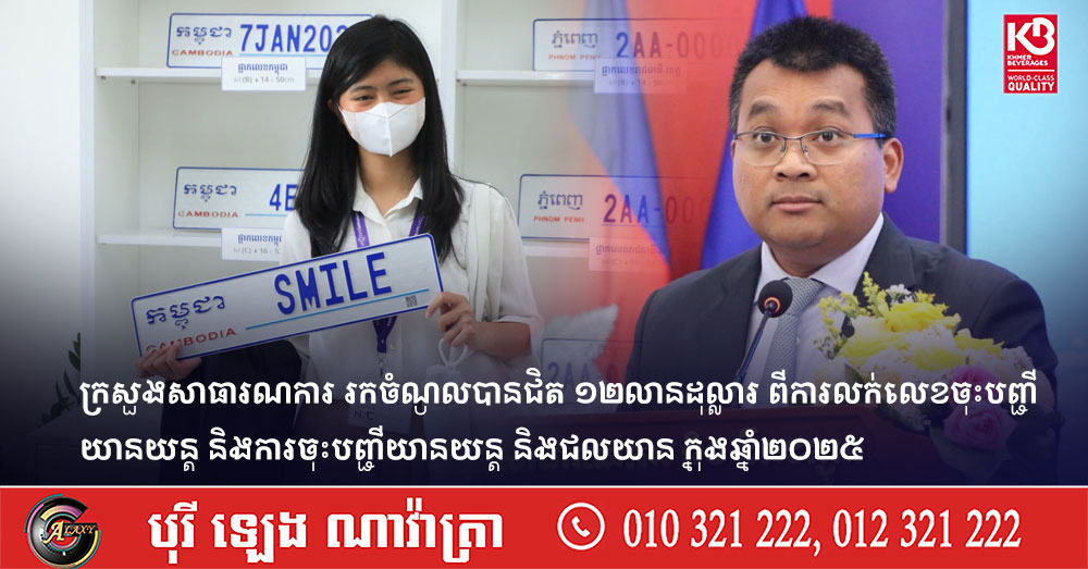 ក្រសួងសាធារណការ រកចំណូលបានជិត ១២លានដុល្លារ ពីការលក់លេខចុះបញ្ជីយានយន្ត និងការចុះបញ្ជីយានយន្ត និងជលយាន ក្នុងឆ្នាំ២០២៥