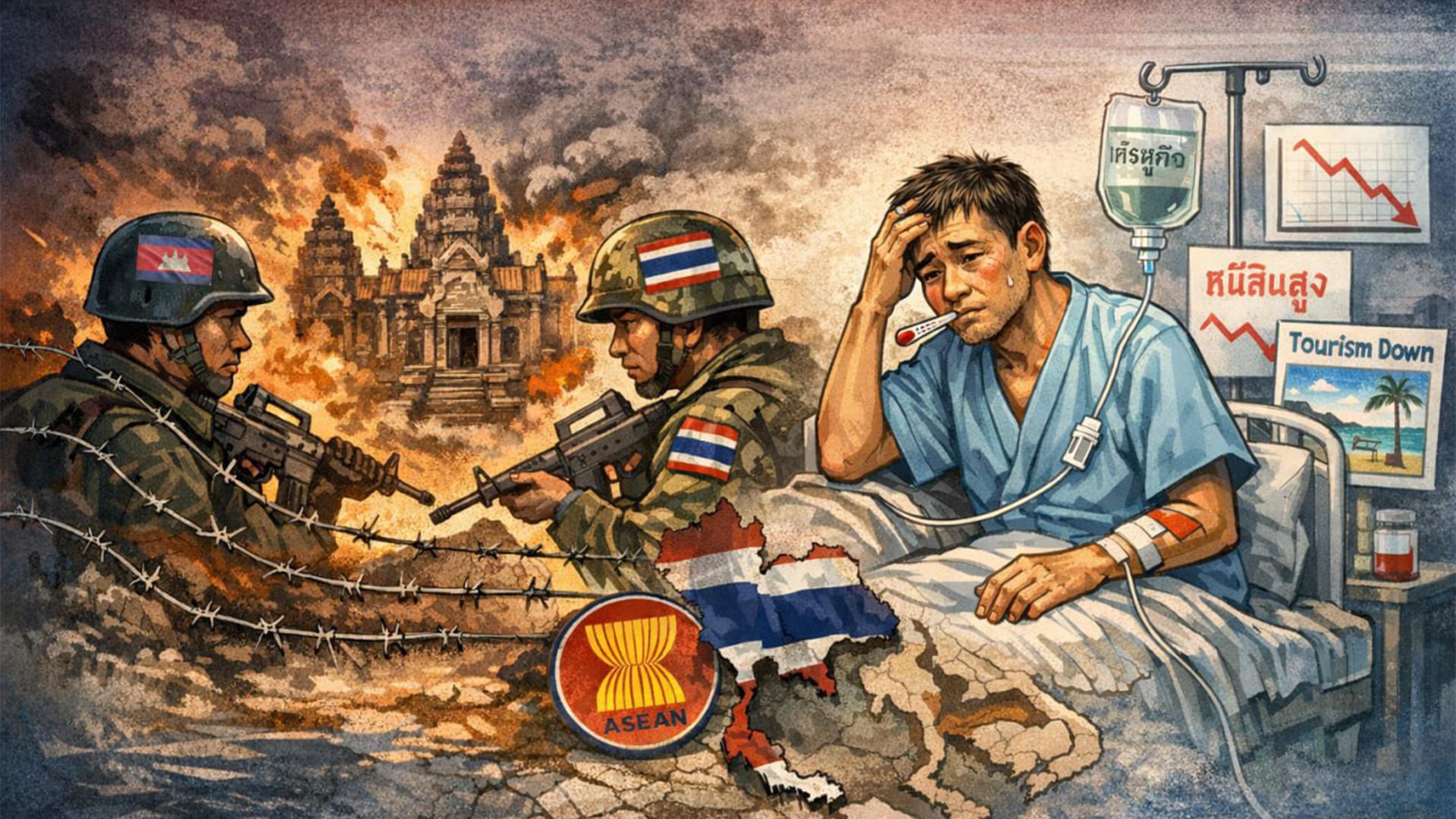 នៅពេលដែលភោជនីយដ្ឋាននៅក្រុងបាងកក កាន់តែស្ងាត់ សណ្ឋាគារមិនពេញបន្ទប់ ហើយអាជីវកម្មតូចៗចាប់ផ្តើមបិទទ្វារ សំណួរមួយកំពុងលេចឡើងយ៉ាងស្ងៀមស្ងាត់ក្នុងសហគមន៍អាស៊ាន៖ តើហេតុអ្វីបានជា ប្រទេសមួយដែលធ្លាប់អួតអាងខ្លួនឯងថាជា «ខ្លាសេដ្ឋកិច្ច» បែរជាកំពុងបង្ហាញរោគសញ្ញាដូចជា អ្នកមានជំងឺក្នុងតំបន់?