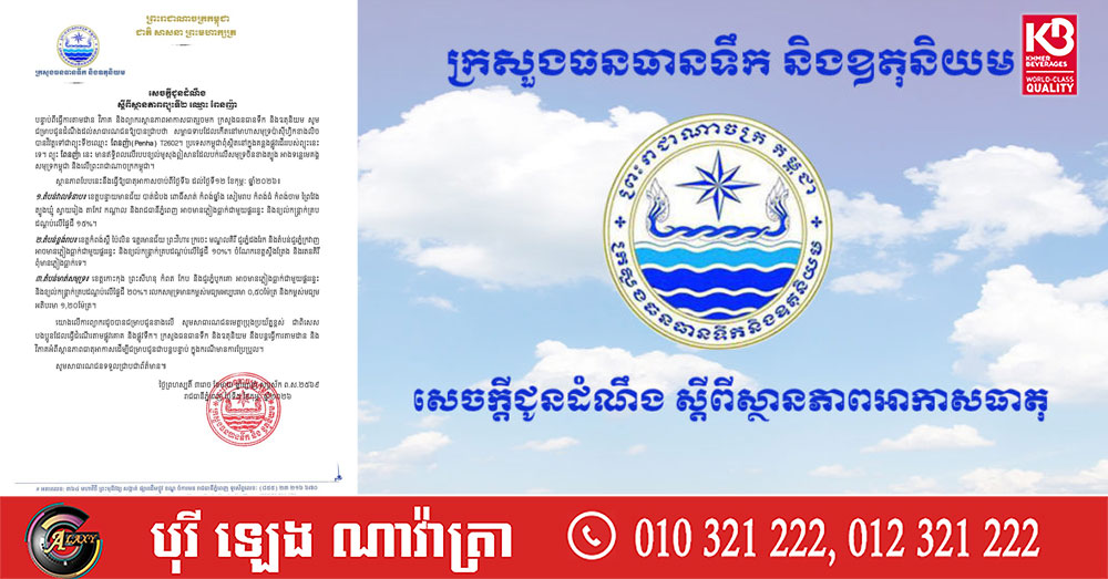 ក្រសួងបានអំពាវនាវសូមសាធារណជនមេត្តាប្រុងប្រយ័ត្នខ្ពស់ ជាពិសេសបងប្អូនដែលធ្វើដំណើរតាមផ្លូវគោក និងផ្លូវទឹក៕