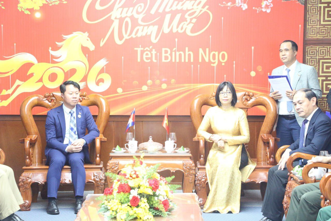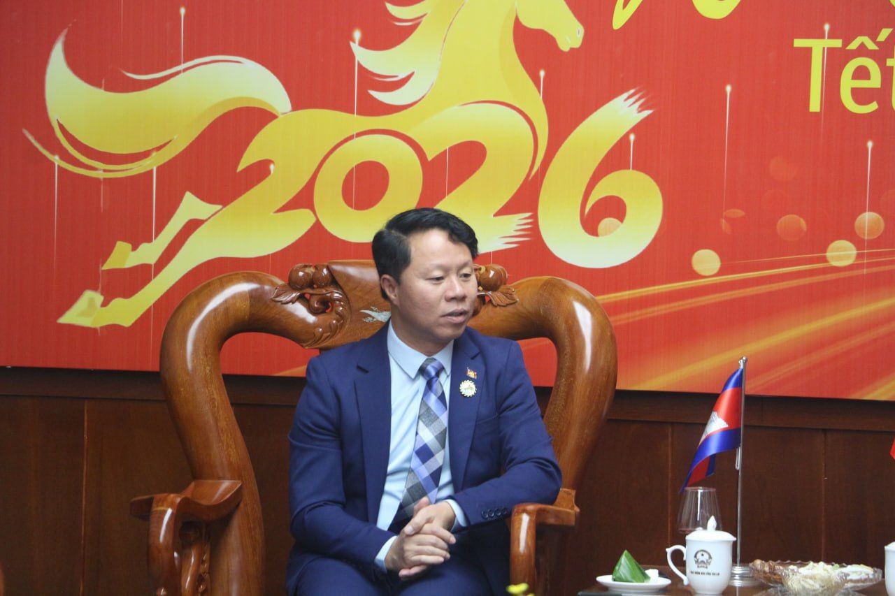 (វៀតណាម)៖ លោក ម៉ែន គុង ជាអភិបាលរងខេត្តតំណាងលោក លោក សរ សុពុត្រា អភិបាលខេត្តស្ទឹងត្រែង និងជាប្រធានគណៈកម្មាធិការគណបក្សខេត្ត និងគណៈប្រតិភូខេត្តស្ទឹងត្រែង នារសៀលថ្ងៃទី ៤ ខែកុម្ភៈ ឆ្នាំ២០២៦ បានដឹកនាំគណៈប្រតិភូ រដ្ឋបាលខេត្តស្ទឹងត្រែង និងកងកំលាំងទាំង ៣ប្រភេទ ចូលលោកស្រី ង្វៀន ធិថាញ់លីច សមាជិកគណៈកម្មាធិការបក្សខេត្ត និងជាអនុប្រធានគណៈកម្មាធិការប្រជាជនខេត្តយ៉ាឡាយ ប្រទេសវៀតណាម ដើម្បីជូនពរឆ្នាំថ្មីប្រពៃណីជាតិវៀតណាម។