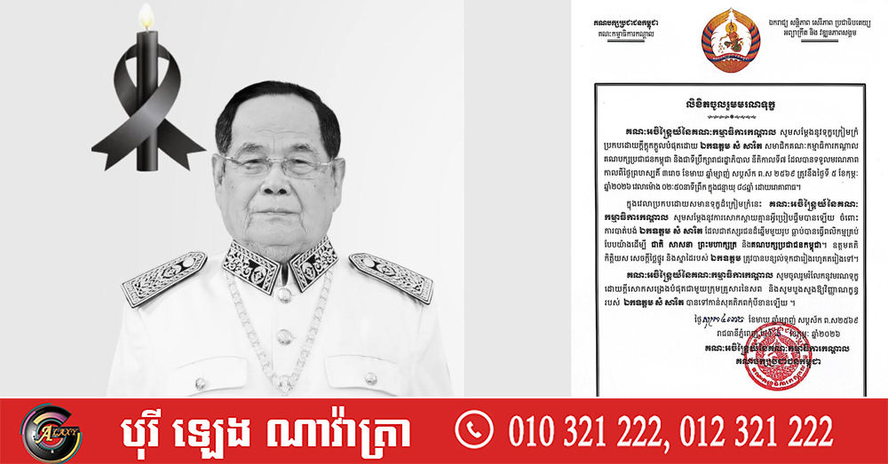 (ភ្នំពេញ)៖ គណៈអចិន្ត្រៃយ៍នៃគណៈកម្មាធិការកណ្តាល គណបក្សប្រជាជនកម្ពុជា បានចេញលិខិតរំលែកទុក្ខ លោក សំ សារិត សមាជិកគណៈកម្មាធិការកណ្តាល គណបក្សប្រជាជនកម្ពុជា និងជាទីប្រឹក្សារាជរដ្ឋាភិបាល ដែលទទួលមរណភាព នាថ្ងៃទី៥ ខែកុម្ភៈ ឆ្នាំ២០២៦ វេលាម៉ោង ០២៖៥០នាទីព្រឹក ក្នុងជន្មាយុ ៨៤ឆ្នាំ ដោយរោគាពាធ។