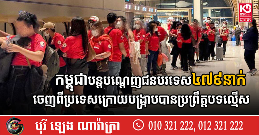 កម្ពុជាបន្ដបណ្ដេញជនបរទេស៤៧៩នាក់ ចេញពីប្រទេសក្រោយបង្ក្រាបបានប្រព្រឹត្តបទល្មើស