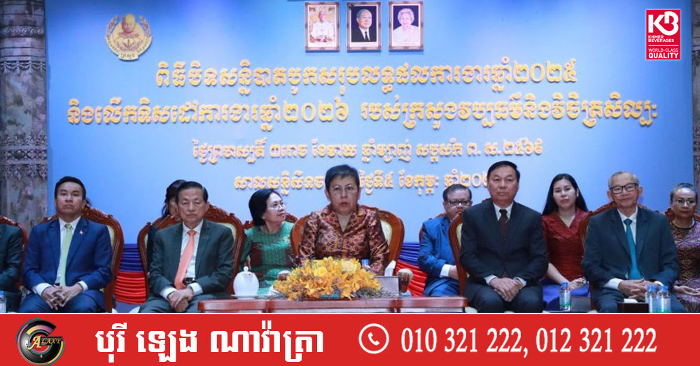 *គ្រប់ថ្នាក់ដឹកនាំ មន្ត្រី បុគ្គលិក សិល្បករ សិល្បការិនីទាំងអស់ក្នុងក្របខ័ណ្ឌក្រសួងវប្បធម៌និងវិចិត្រ សិល្បៈ សូមបន្តស្មារតីរួបរួមខ្មែរតែមួយ ចូលរួមទាំងទឹកចិត្ត សម្ភារៈ និងថវិកា ជ្រោមជ្រែងដល់វីរកងទ័ព និងជួយសម្រួលដល់ស្ថានភាពជនភៀសសឹកកម្ពុជាយើង និងសូមបន្តជឿជាក់និងគាំទ្រដល់វិធានការ នានាដែលរាជរដ្ឋាភិបាលបានដាក់ចេញក្នុងការការពារបូរណភាពទឹកដីរបស់យើង៕