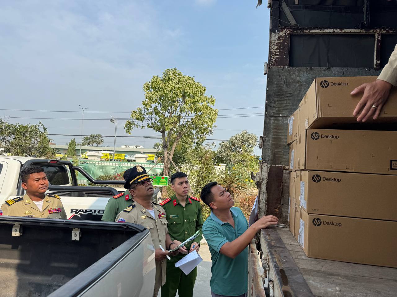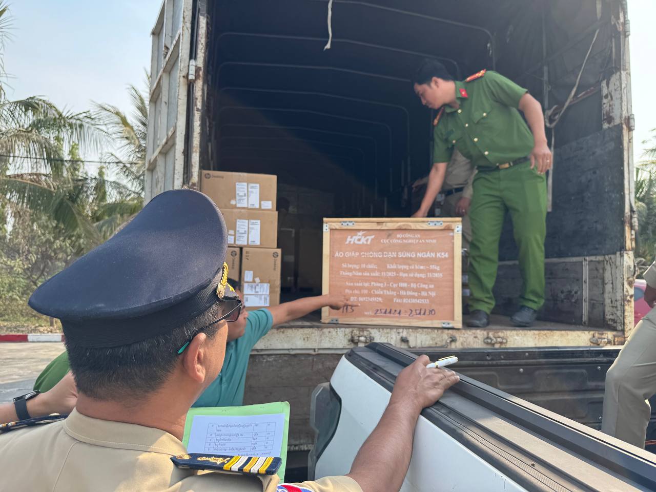 ពិធីប្រគល់-ទទួលនេះ ប្រារព្ធធ្វើឡើងច្រកអន្តរជាតិម៉ុកបាយ ខេត្តតៃនីញ ដែលសម្ភារៈទាំងអស់មានតម្លៃប្រមាណ ១០ម៉ឺនដុល្លាអាមេរិក ដែលរួមមានដូចខាងក្រោម៖