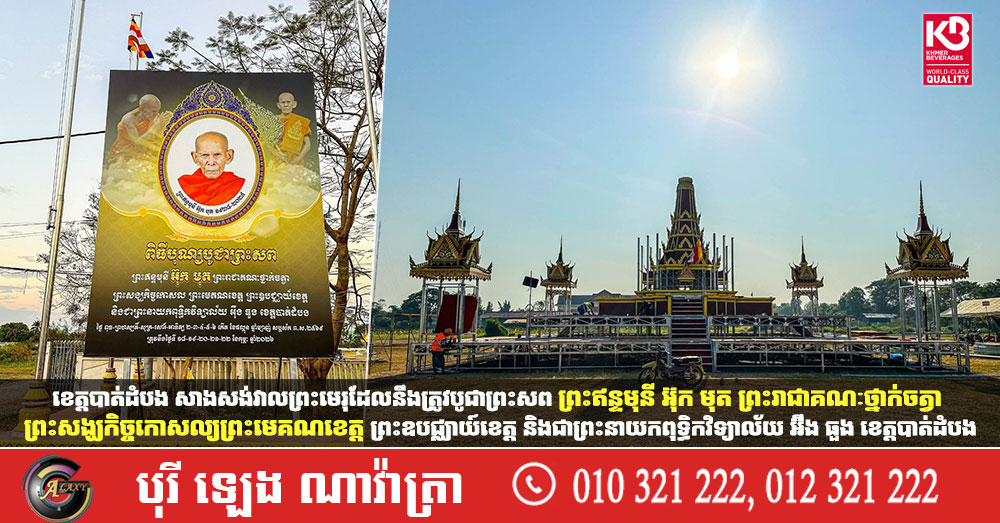ខេត្តបាត់ដំបង សាងសង់វាលព្រះមេរុដែលនឹងត្រូវបូជាព្រះសព ព្រះឥន្ទមុនី អ៊ុក មុត ព្រះរាជាគណៈថ្នាក់ចត្វា ព្រះសង្ឃកិច្ចកោសល្យព្រះមេគណខេត្ត ព្រះឧបជ្ឈាយ៍ខេត្ត និងជាព្រះនាយកពុទ្ធិកវិទ្យាល័យ អ៊ឹង ធួង ខេត្តបាត់ដំបង