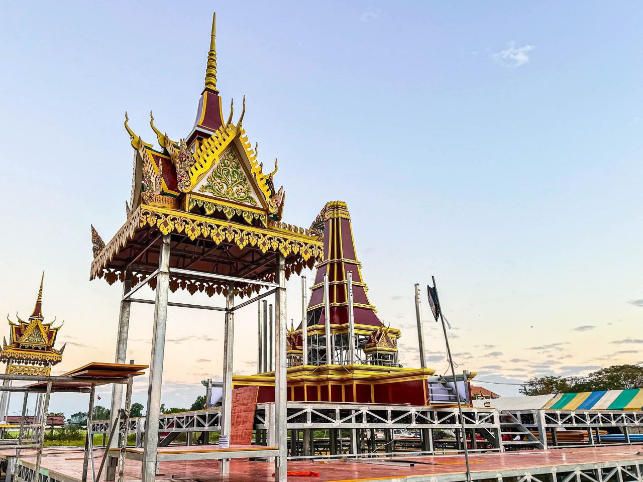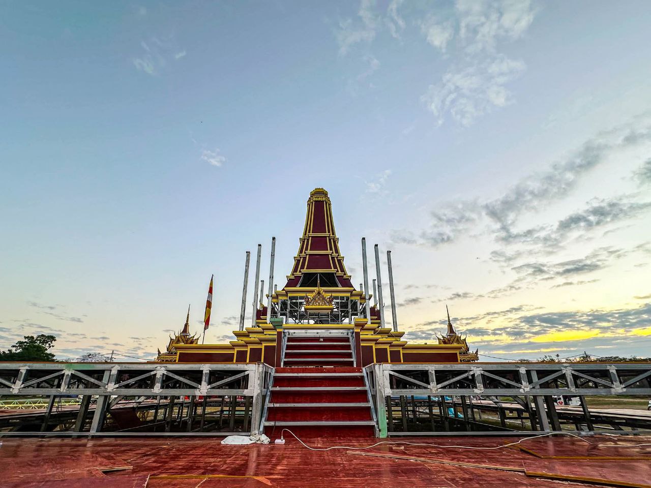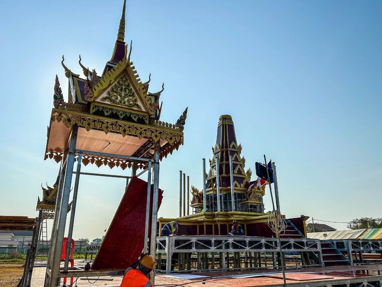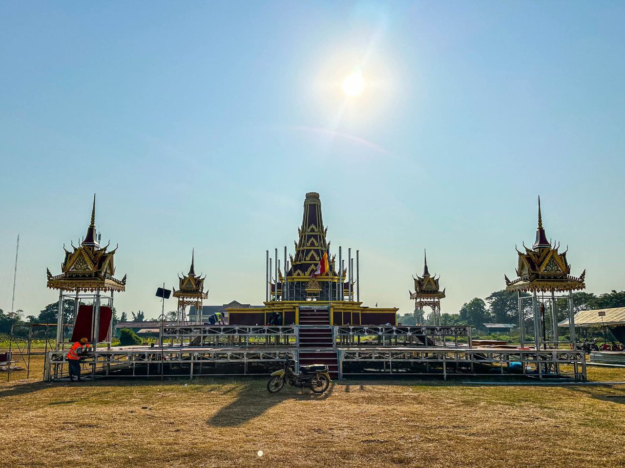 (បាត់ដំបង)៖ ក្រុមការងារខេត្តបាត់ដំបង រៀបចំសាងសង់វាលព្រះមេរុដែលនឹងត្រូវបូជាព្រះសព ព្រះឥន្ទមុនី អ៊ុក មុត ព្រះរាជាគណៈថ្នាក់ចត្វា ព្រះសង្ឃកិច្ចកោស ល្យព្រះមេគណខេត្ត ព្រះឧបជ្ឈាយ៍ខេត្ត និងជាព្រះនាយកពុទ្ធិកវិទ្យាល័យ អ៊ឹង ធួង ខេត្តបាត់ដំបងដែល បានទទួលអនិច្ចកម្ម កាលពីថ្ងៃសៅរ៍ ៥រោច ខែអាសាឍ ឆ្នាំម្សាញ់ សប្តស័ក ព.ស.២៥៦៩ ត្រូវនឹងថ្ងៃទី១៩ ខែកក្កដា ឆ្នាំ២០២៥ វេលាម៉ោង១៩៖០០នាទី ក្នុងព្រះជន្មាយុ៨៨ព្រះវស្សា ដោយព្រះជរាពាធ នៅឯវត្តពោធិ៍វាល សង្កាត់រតនៈ ក្រុងបាត់ដំបង ខេត្តបាត់ដំបង។