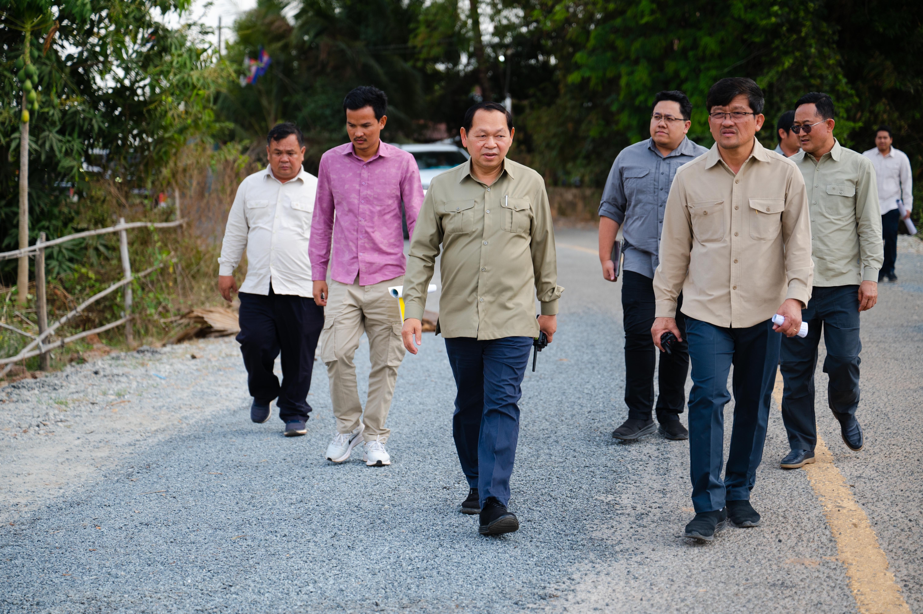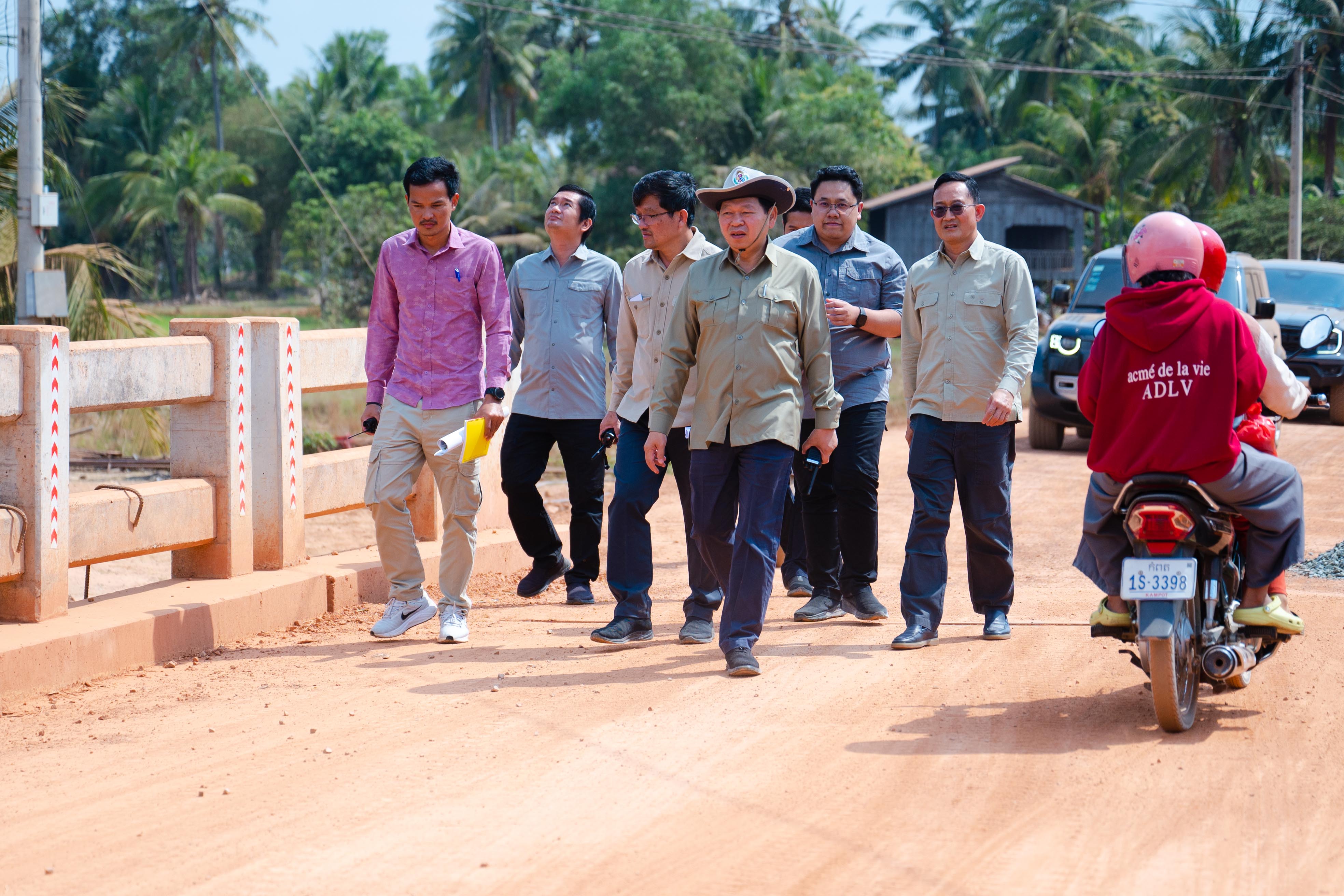 រដ្ឋមន្រ្ដី ឆាយ ឫទ្ធិសែន ដឹកនាំមន្ដ្រីជំនាញក្រសួង ចុះពិនិត្យគុណភាពផ្លូវជនបទចំនួន ៧ខ្សែ នៅខេត្តកំពត
