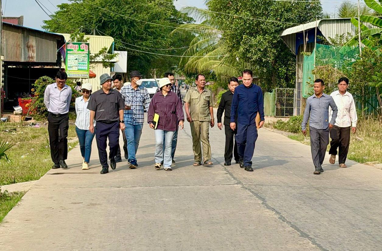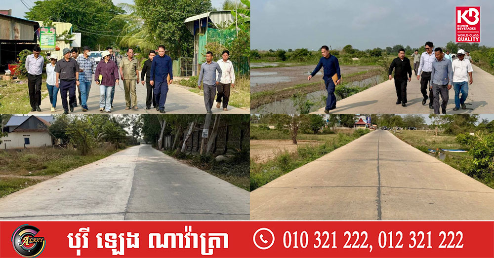 (កណ្តាល)៖ លោក អ៉ិន ចន្ថា រដ្ឋលេខាធិការក្រសួងអភិវឌ្ឍន៍ជនបទ និងជាសមាជិកគណៈកម្មាធិការលទ្ធកម្ម នៅថ្ងៃទី៦ ខែកុម្ភៈ ឆ្នាំ២០២៦នេះ បានដឹកនាំក្រុមការងារ ចុះត្រួតពិនិត្យ វាយតម្លៃបញ្ចប់សុពលភាព លើការងារស្ថាបនាផ្លូវក្រាលបេតុងចំនួន១ខ្សែ ប្រវែង ២ ២០០ម៉ែត្រ ទទឹង ៦ម៉ែត្រ ស្ថិតនៅភូមិព្រែកស្លែង ឃុំតាលន់ ទៅភូមិលេខ២ ឃុំប្រាសាទ ស្រុកស្អាង ខេត្តកណ្តាល។