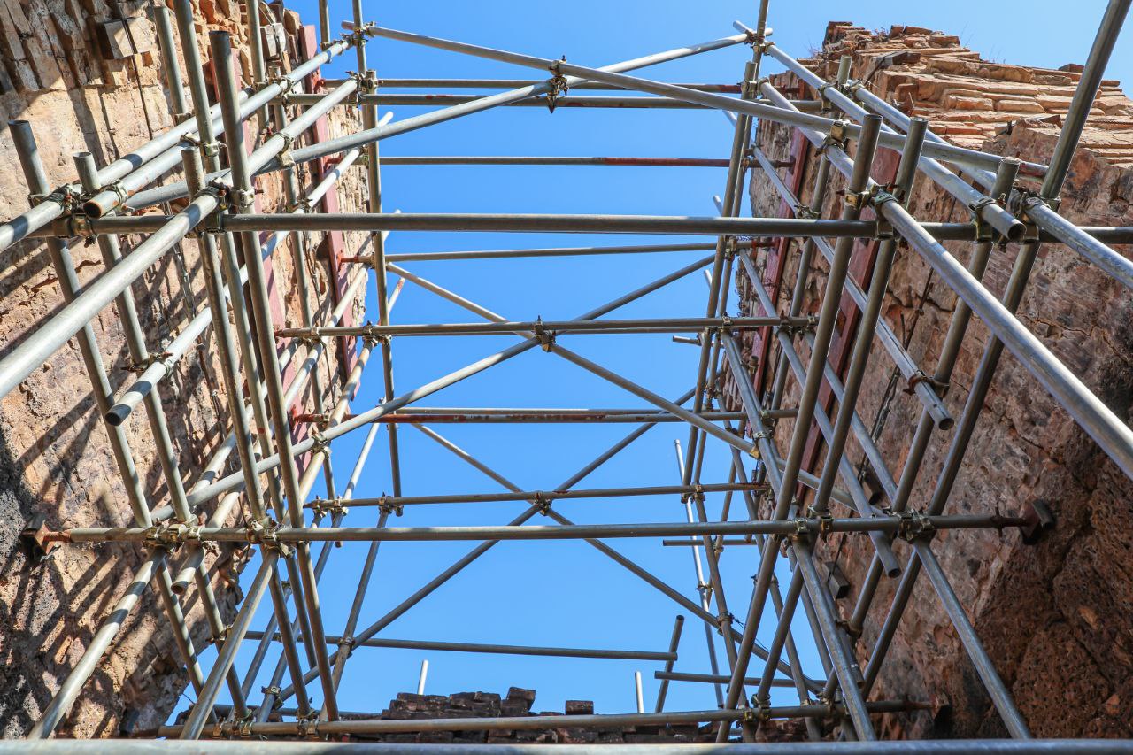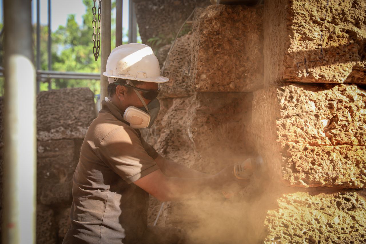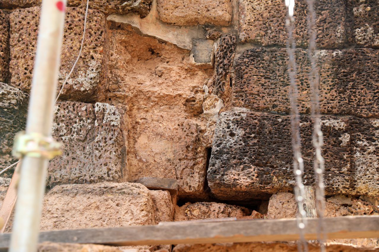 ក្នុងនោះ ក្រុមការងារផ្តោតសំខាន់ទៅលើការជួសជុលគ្រឹះ និងជញ្ជាំងថ្មបាយក្រៀម ដែលព័ទ្ធជុំវិញជារចនាសម្ពន្ធសម្រាប់ទ្រទ្រង់ដល់តួប៉មឥដ្ឋផ្នែកខាងលើ ដោយធ្វើការសម្អាតយកកំណកដីចេញពីតាមចន្លោះថ្នេរថ្ម និងកន្លែងប្រេះ រួចបិតបាយអឡើងវិញ ដើម្បីធានាមិនឱ្យទឹកជ្រាបចូល។