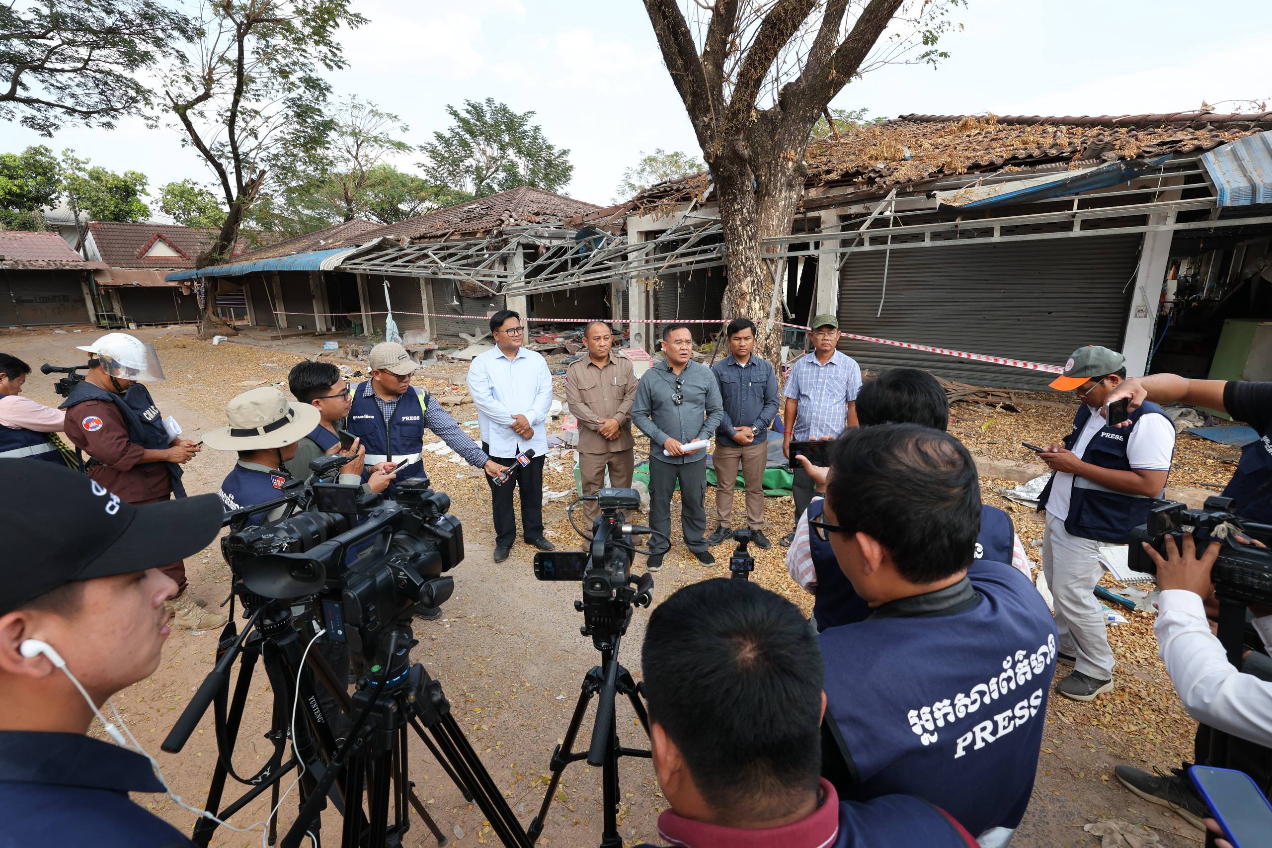 ថ្លែងប្រាប់អ្នកសារព័ត៌មានជាតិមកពីរាជធានីភ្នំពេញ ដែលដឹកនាំដោយក្រសួងព័ត៌មាន នាថ្ងៃទី៥ ខែកុម្ភៈ ឆ្នាំ២០២៦ លោក ម៉េត មាសភក្តី បានបញ្ជាក់ថា៖ «ក្រោយទទួលបាននូវបទឈប់បាញ់កាលពីថ្ងៃទី២៧ ខែធ្នូ គឺនៅថ្ងៃទី២៨ ខែធ្នូ កងទ័ពសៀម បានដាក់លូប្រអប់ និងរាយបន្លាលួសចូលមកក្នុងទឹកដីកម្ពុជា ប្រមាណ៤០០ម៉ែត្រ ពីច្រកទ្វារដែលមានការឯកភាពគ្នា ដែលមានបង្គោលព្រំសីមាលេខ១៥ អានេះឆ្លុះពីការឈ្លានពានរបស់កងទ័ពសៀម មកលើទឹកដីកម្ពុជា របស់យើង»។