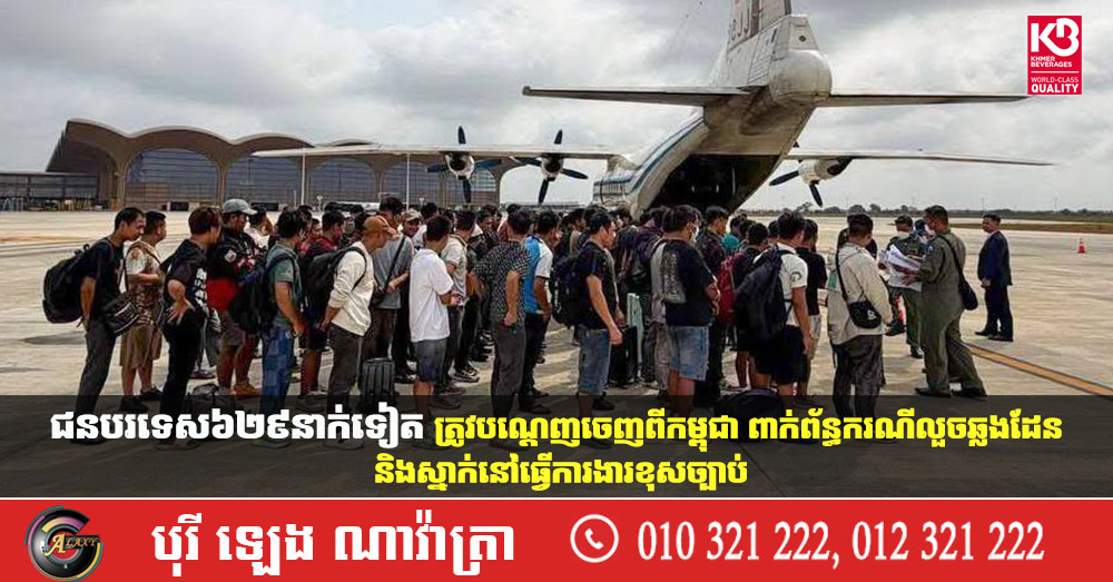 ជនបរទេស៦២៩នាក់ទៀត ត្រូវបណ្ដេញចេញពីកម្ពុជា ពាក់ព័ន្ធករណីលួចឆ្លងដែន និងស្នាក់នៅធ្វើការងារខុសច្បាប់