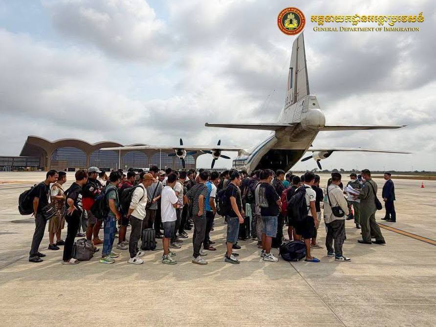 (ភ្នំពេញ)៖ នៅថ្ងៃទី៦ ខែកុម្ភៈ ឆ្នាំ២០២៦ អនុវត្តតាមអនុសាសន៍របស់លោកអភិសន្តិបណ្ឌិត ស សុខា ឧបនាយករដ្ឋមន្ត្រី រដ្ឋមន្ត្រីក្រសួងមហាផ្ទៃ និងថ្នាក់ដឹកនាំក្រសួងមហាផ្ទៃ លោកឧត្តមសេនីយ៍ឯក សុខ វាសនា អគ្គនាយកអន្តោប្រវេសន៍ បានណែនាំឲ្យនាយកដ្ឋានស៊ើបអង្កេត និងអនុវត្តនីតិវិធី បន្តធ្វើការបណ្តេញជនបរទេសសរុបចំនួន៦២៩នាក់ (ស្រី៦២នាក់) ចេញពីកម្ពុជា តាមតាមប៉ុស្តិ៍នគរបាលច្រកទ្វារអាកាសអន្តរជាតិតេជោ និងប៉ុស្តិ៍នគរបាលច្រកទ្វារអាកាសយានដ្ឋានអន្តរជាតិអង្គរ។