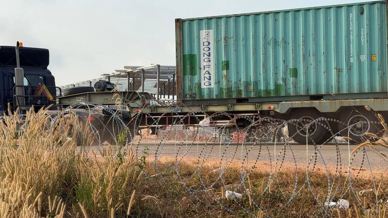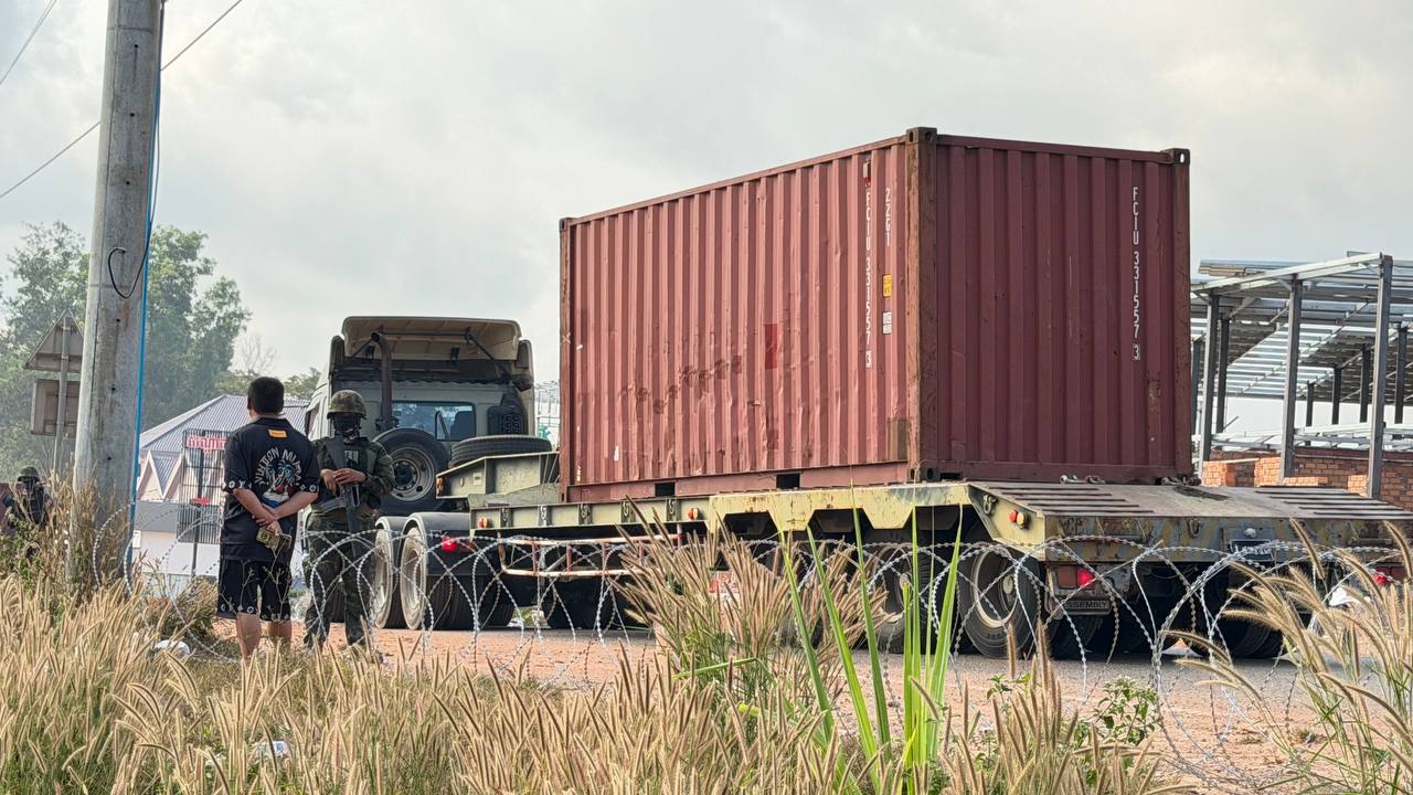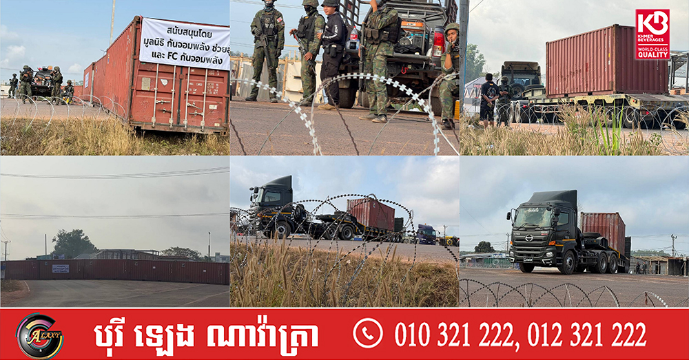 (ពោធិ៍សាត់)៖ នៅព្រឹកព្រលឹមថ្ងៃទី៧ ខែកុម្ភៈ ឆ្នាំ២០២៦នេះ យោធាឈ្លានពានថៃ បាននាំគ្នាដាក់ទូកុងតឺន័រថ្មីកាត់ទទឹងផ្លូវជាតិលេខ៥៥ ព័ទ្ធយកដីរបស់ខ្មែរនៅឃុំថ្មដា ស្រុកវាលវែង ខេត្តពោធិ៍សាត់ បន្ទាប់ពីបានរាយបន្លាលួសនាពេលកន្លងមក ដែលជាអំពើរំលោភបំពានយ៉ាងកំរោលនូវកិច្ចព្រមព្រៀង និងសេចក្តីប្រកាសរួមនានា ព្រមទាំងមិនញញើតច្បាប់អន្តរជាតិសោះឡើយ។