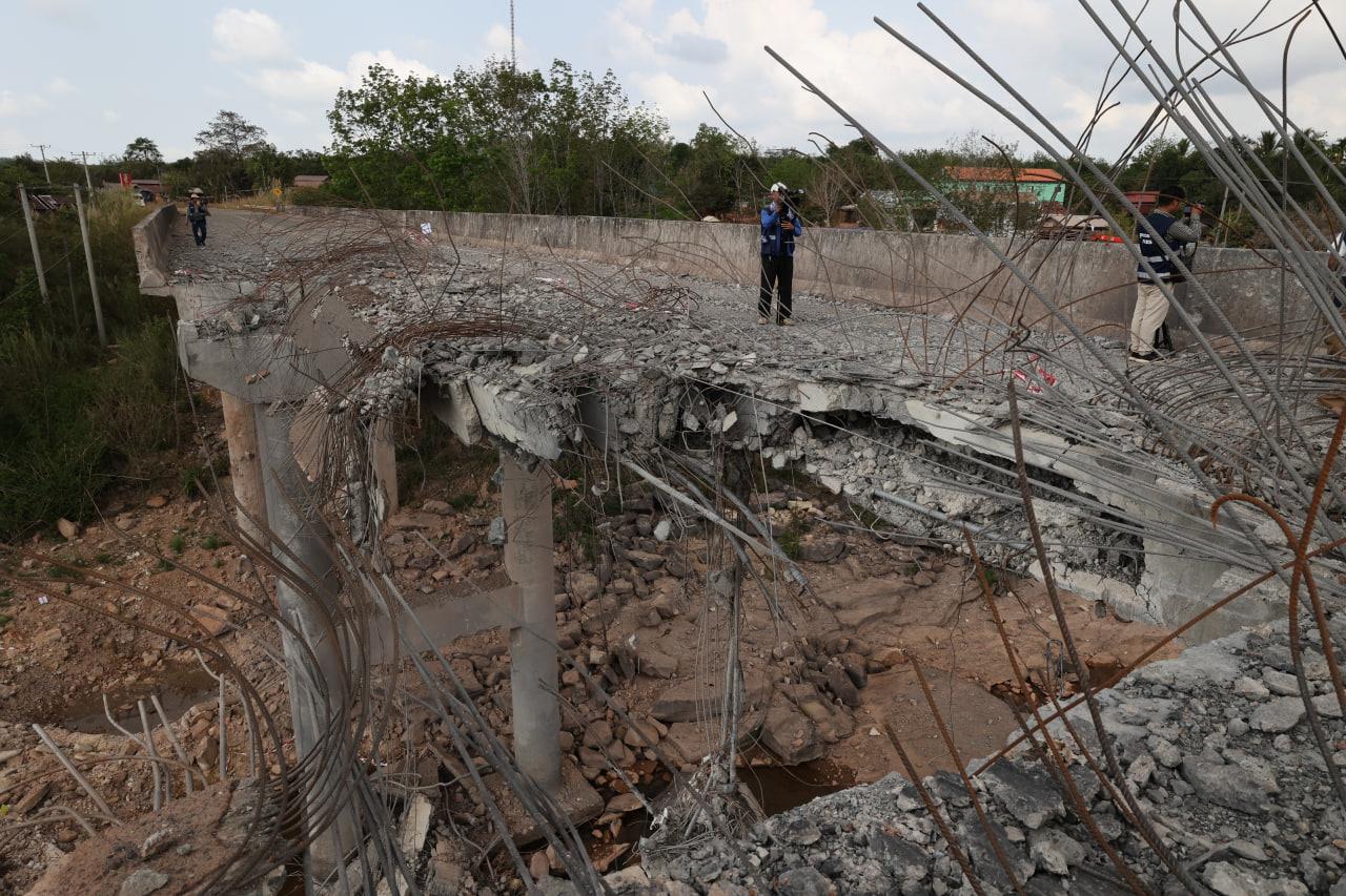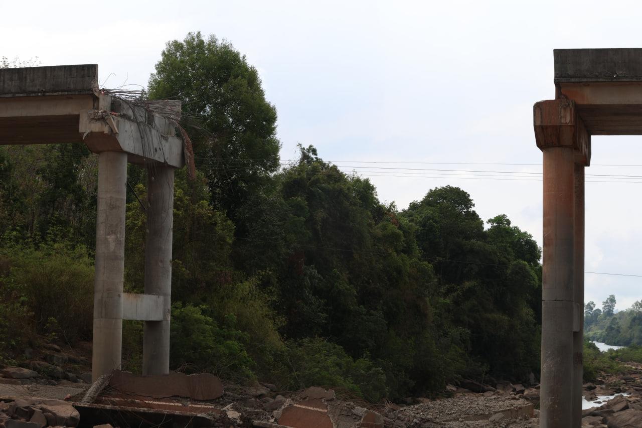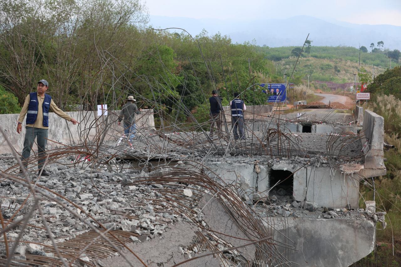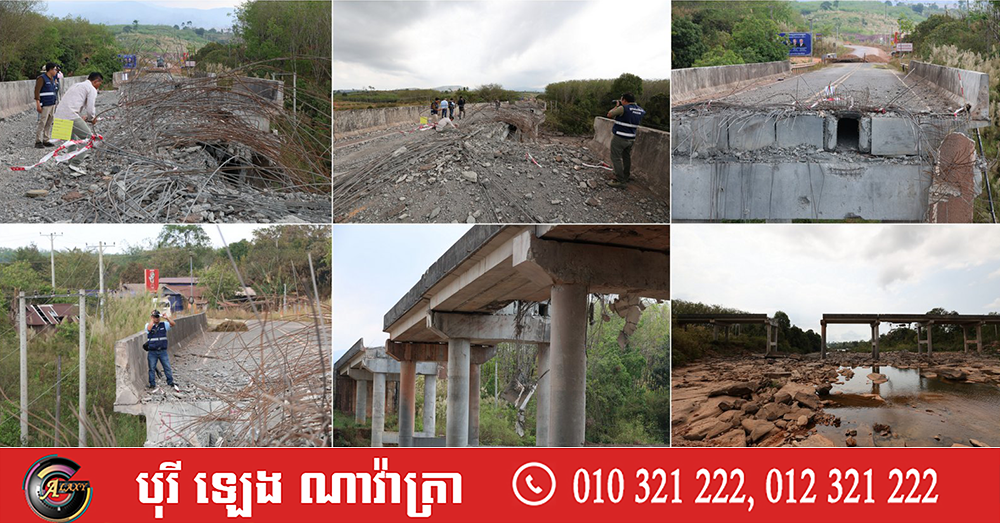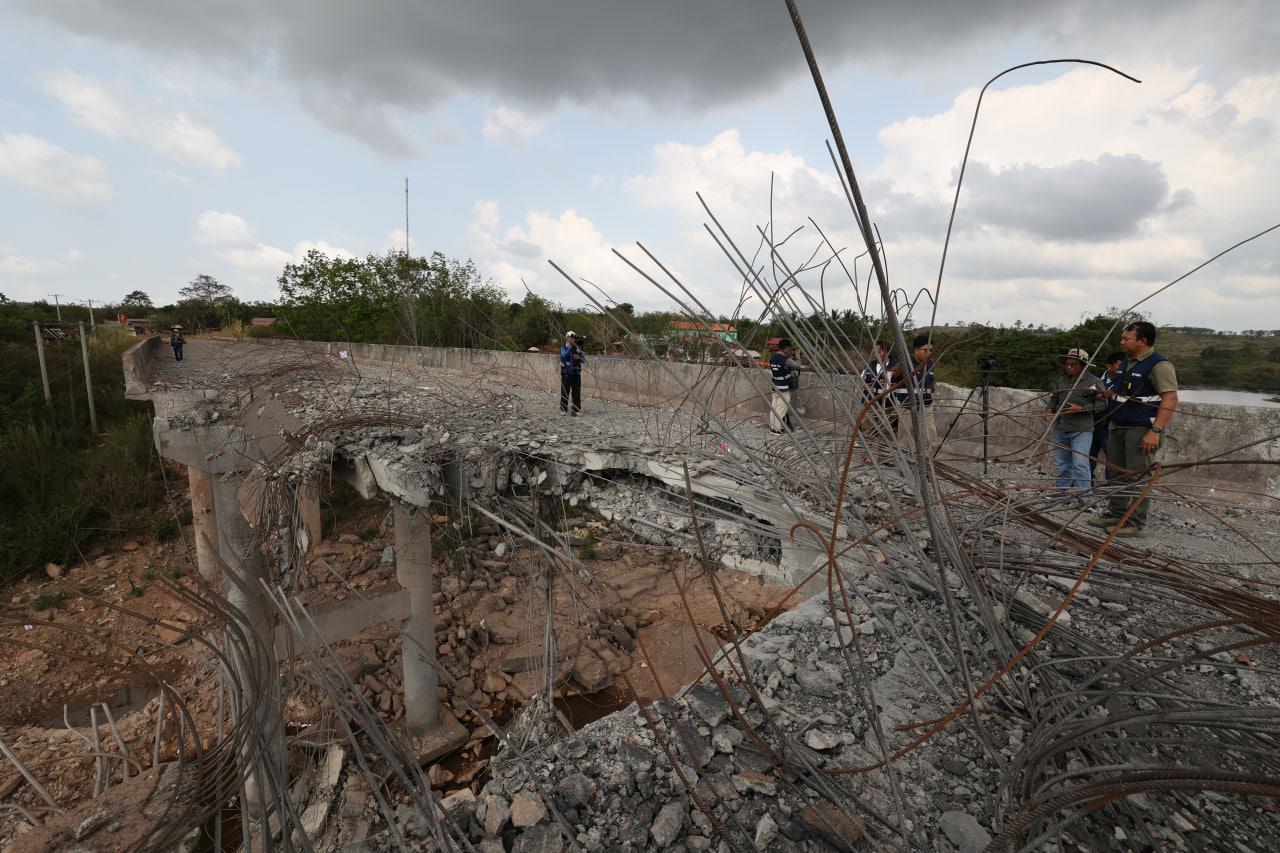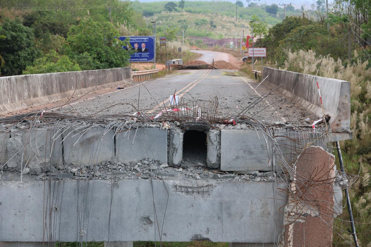 ទិដ្ឋភាពស្ពានមេទឹក (ស្ពានជ័យជំនះ) ស្រុកវាលវែង ដែលត្រូវយន្ដហោះ F16 របស់យោធាថៃ ទម្លាក់គ្រាប់បែក MK84 ជាច្រើនគ្រាប់កម្ទេចចោលទាំងស្រុងកាលពីខែធ្នូ ឆ្នាំ២០២៥ (Photo inside)