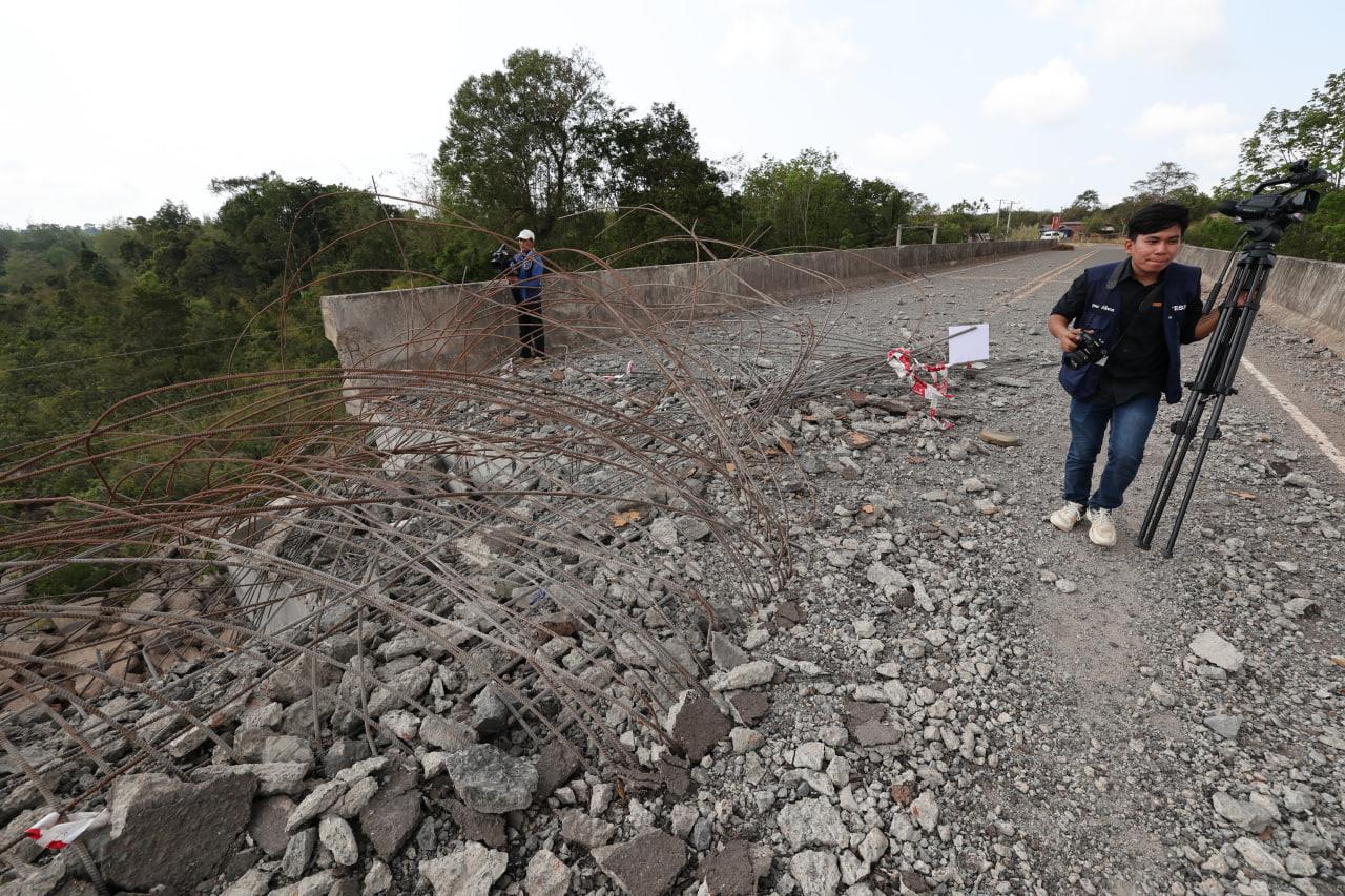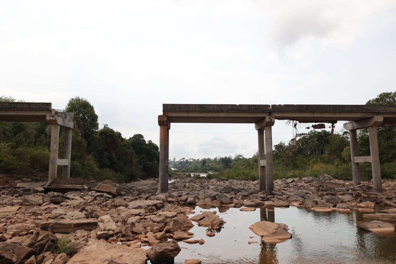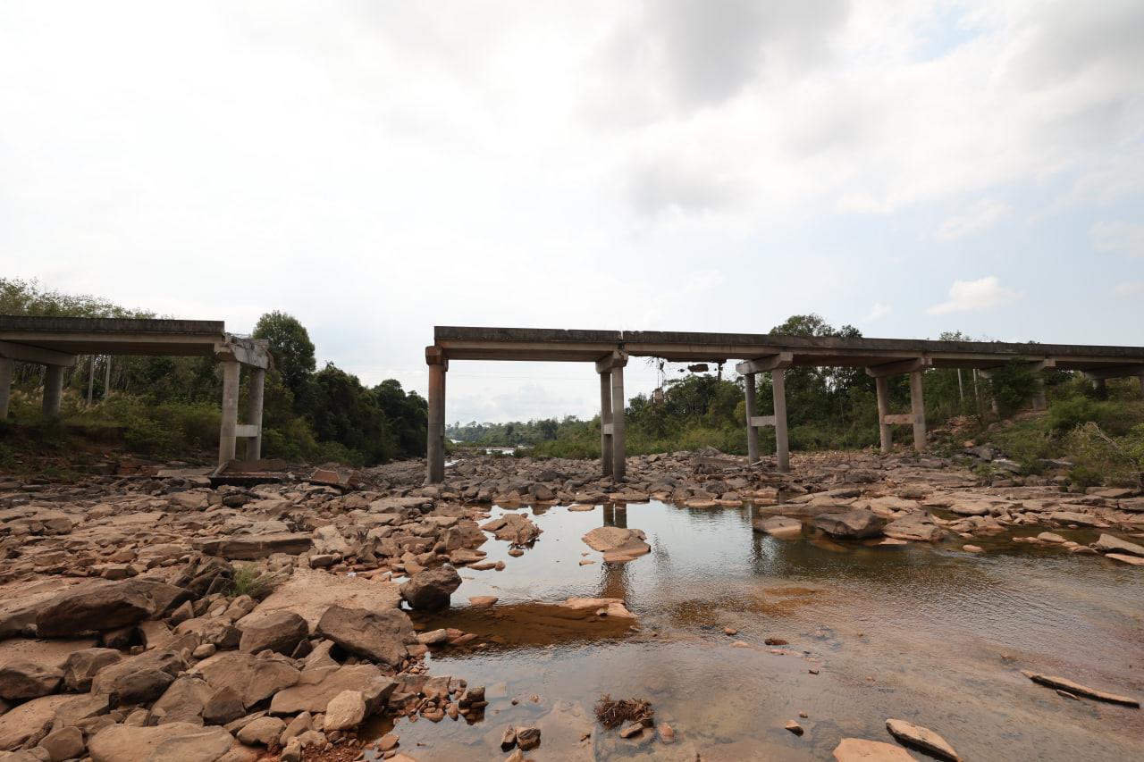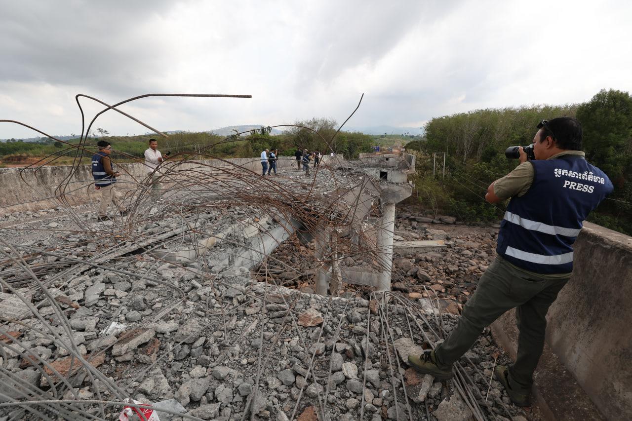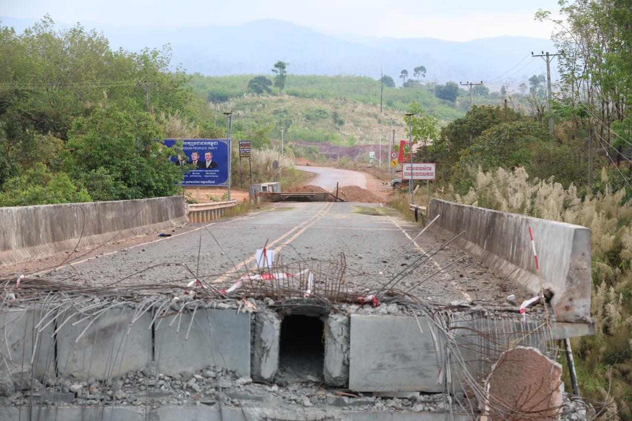 ទិដ្ឋភាពស្ពានមេទឹក (ស្ពានជ័យជំនះ) ស្រុកវាលវែង ដែលត្រូវយន្ដហោះ F16 របស់យោធាថៃ ទម្លាក់គ្រាប់បែក MK84 ជាច្រើនគ្រាប់កម្ទេចចោលទាំងស្រុងកាលពីខែធ្នូ ឆ្នាំ២០២៥ (Photo inside)