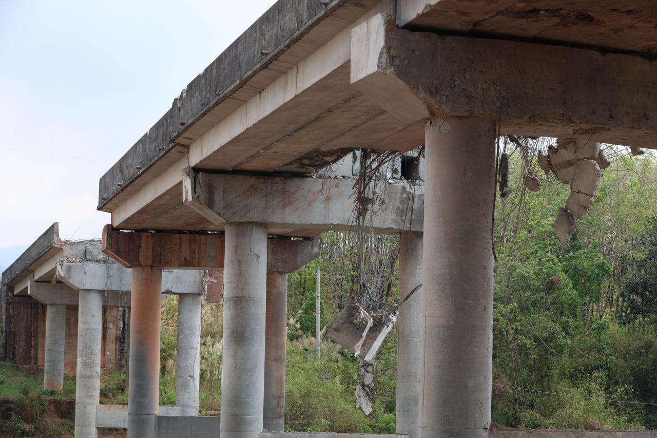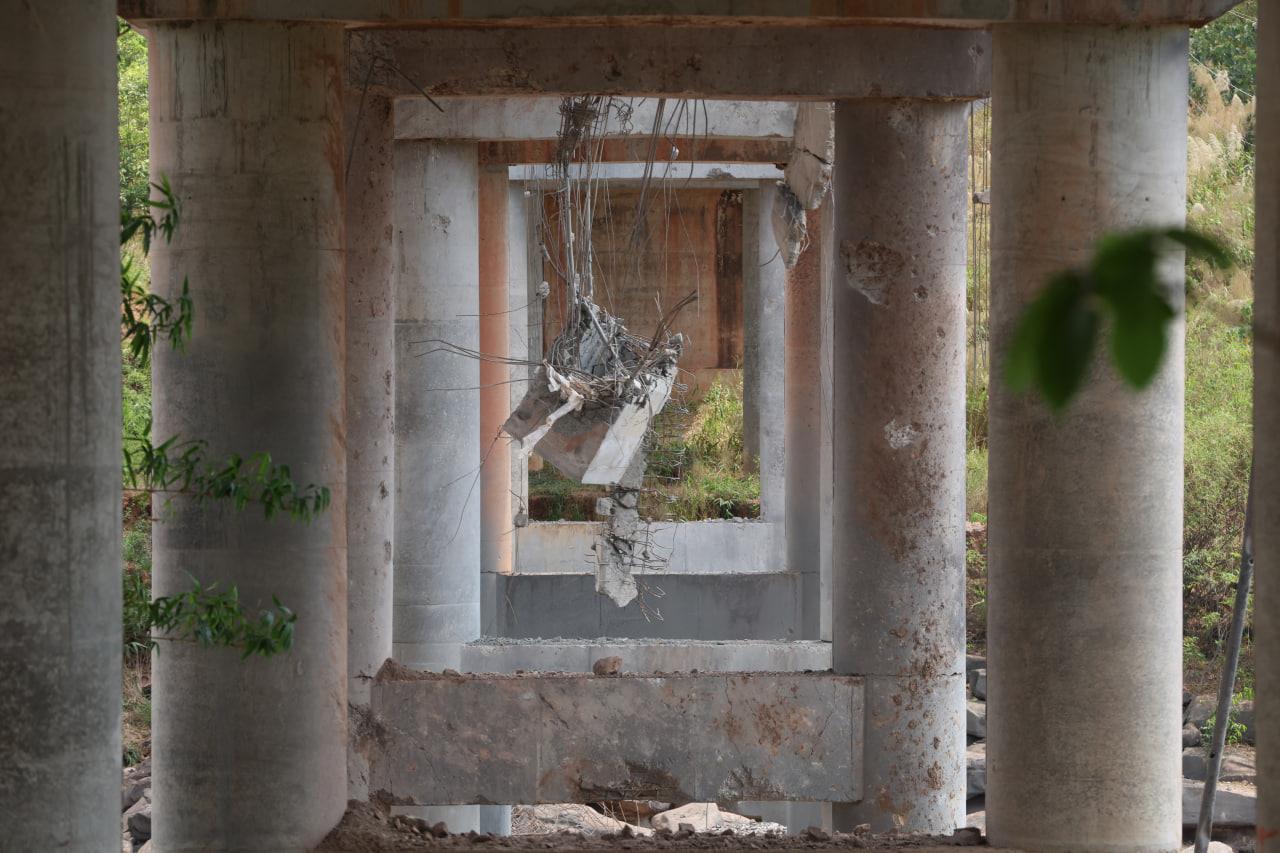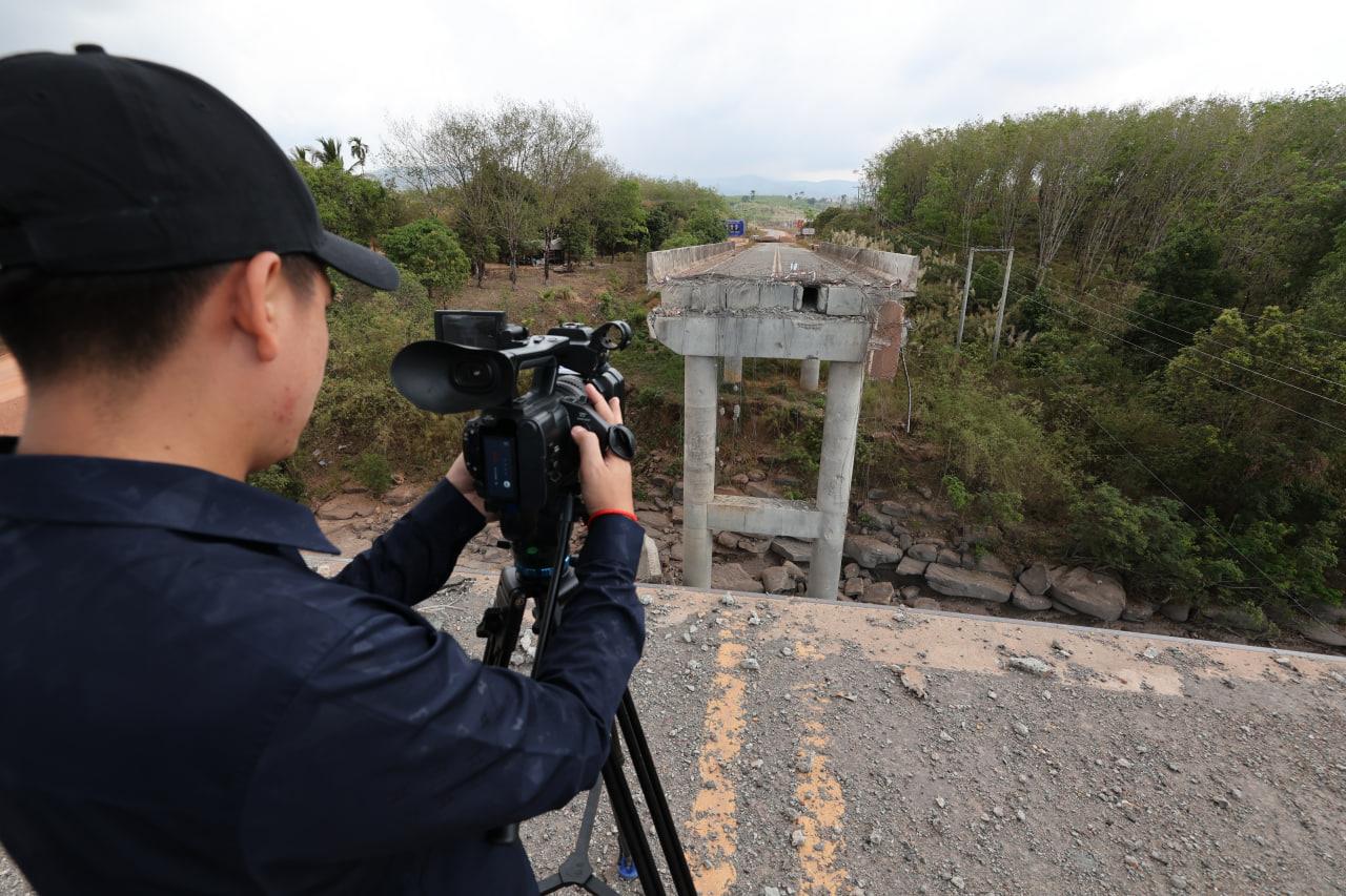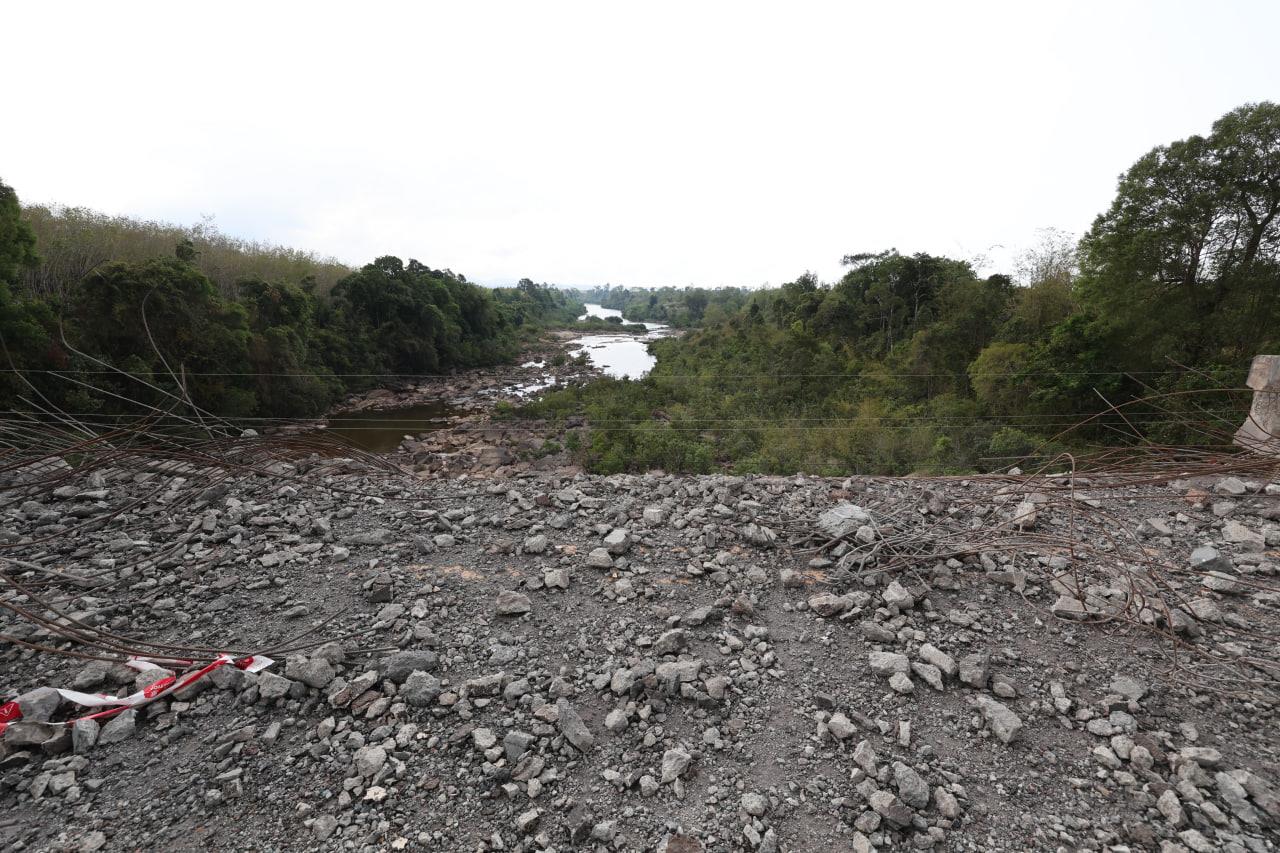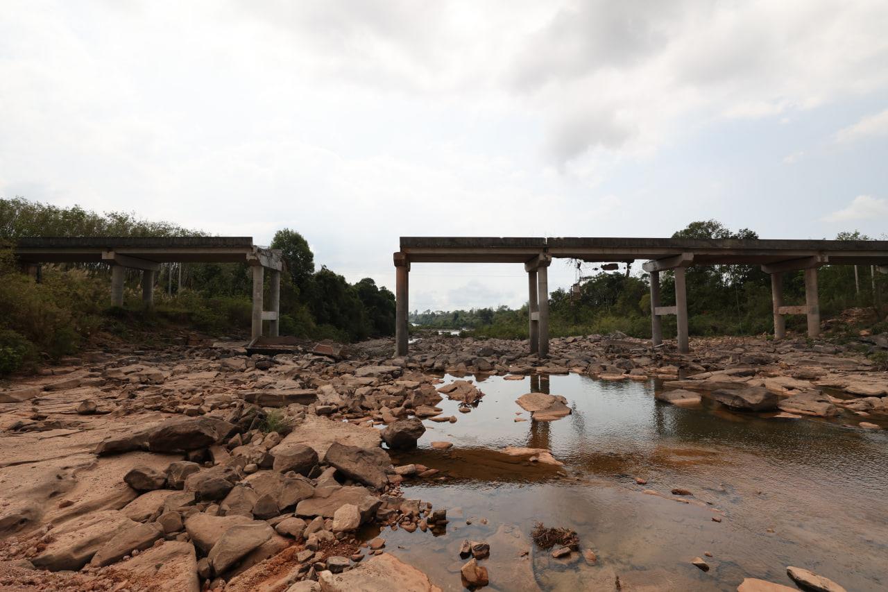 ទិដ្ឋភាពស្ពានមេទឹក (ស្ពានជ័យជំនះ) ស្រុកវាលវែង ដែលត្រូវយន្ដហោះ F16 របស់យោធាថៃ ទម្លាក់គ្រាប់បែក MK84 ជាច្រើនគ្រាប់កម្ទេចចោលទាំងស្រុងកាលពីខែធ្នូ ឆ្នាំ២០២៥ (Photo inside)