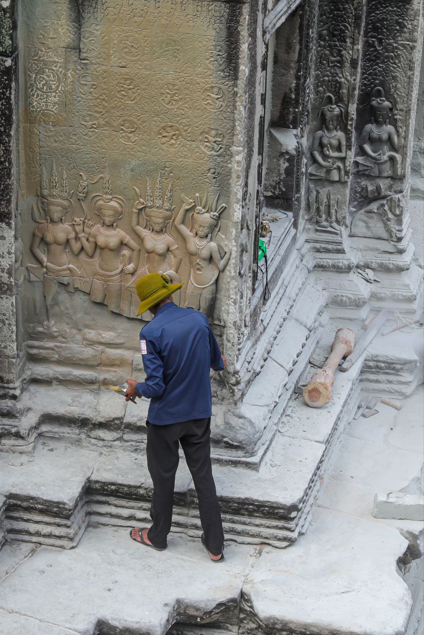 លោក សយ សុភារិន្ទ បុរាណវិទូនៃអាជ្ញាធរជាតិអប្សរា បានបញ្ជាក់ថា ការជួសជុលថ្មនេះ ផ្តោតលើការទប់ស្កាត់កុំឱ្យថ្មបន្តពុកផុយ បែកឬប្រេះបន្តទៀត ដែលអាចប៉ះពាល់ ឬធ្វើឱ្យបាត់បង់រូបរាង ក្បាច់ ចម្លាក់ ពិសេសរូបអប្សរា ប្រសិនបើពុំមានការព្យាបាលបានទាន់ពេលវេលានោះទេ។
