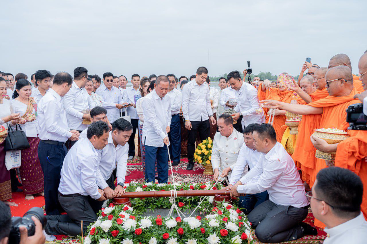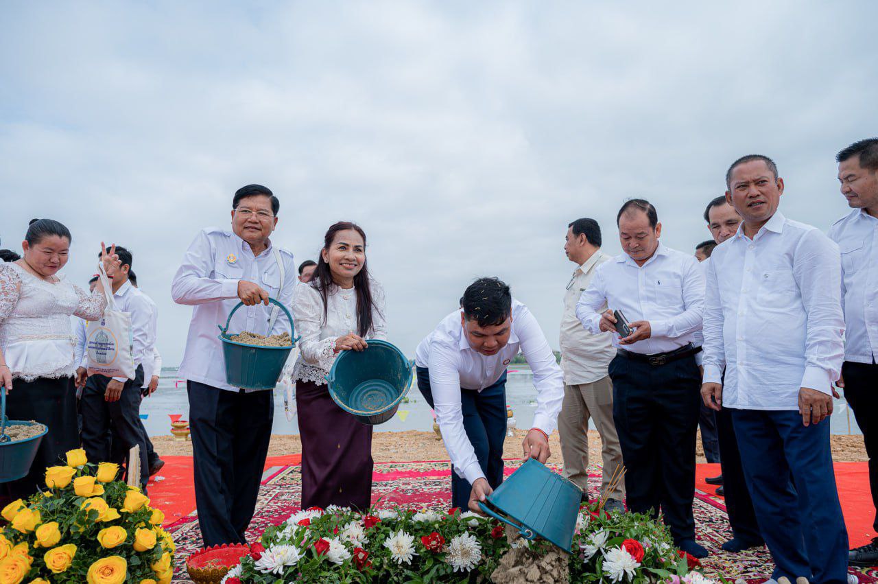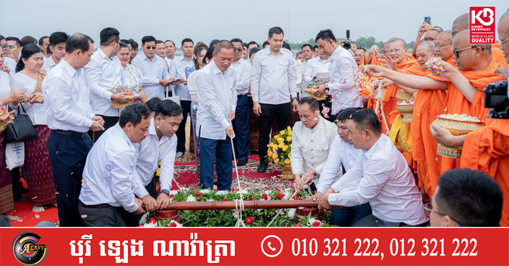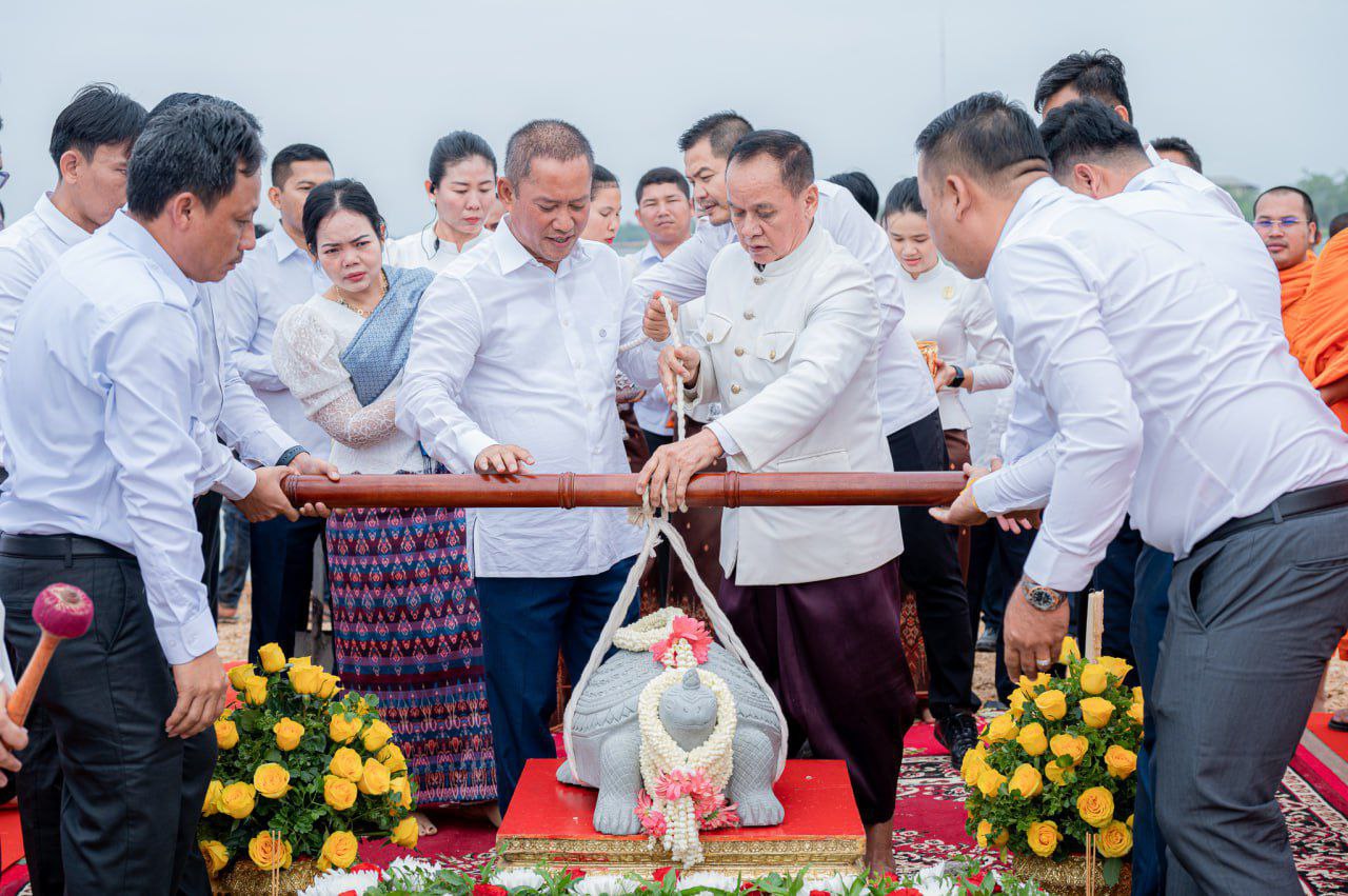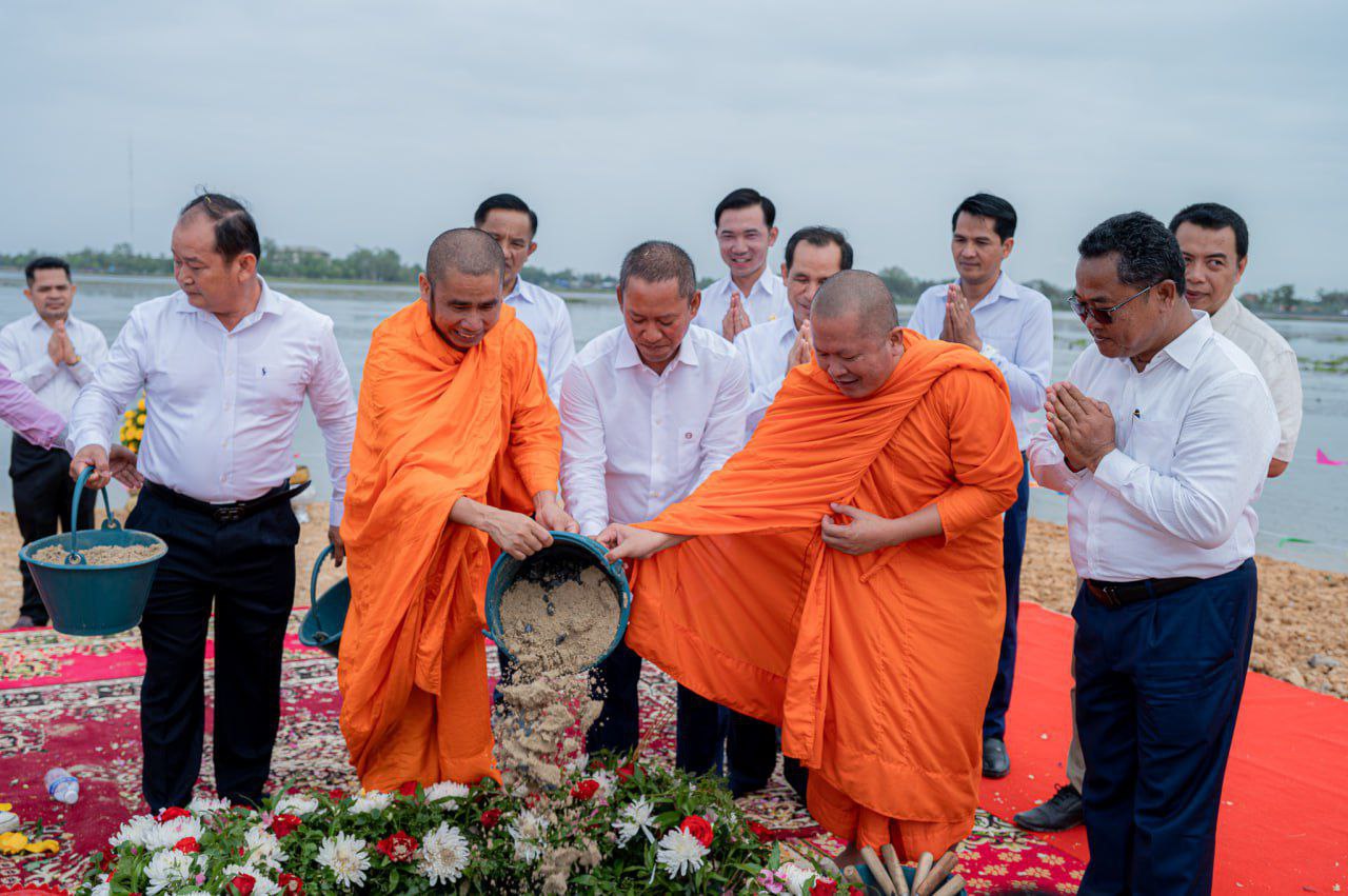 បញ្ចុះបឋមសិលាបើកការដ្ឋានសាងសង់ សំណង់ស្ថាបត្យកម្មប្រាសាទសិរីវិជយ នៅកណ្ដាលបឹងតាកែវ