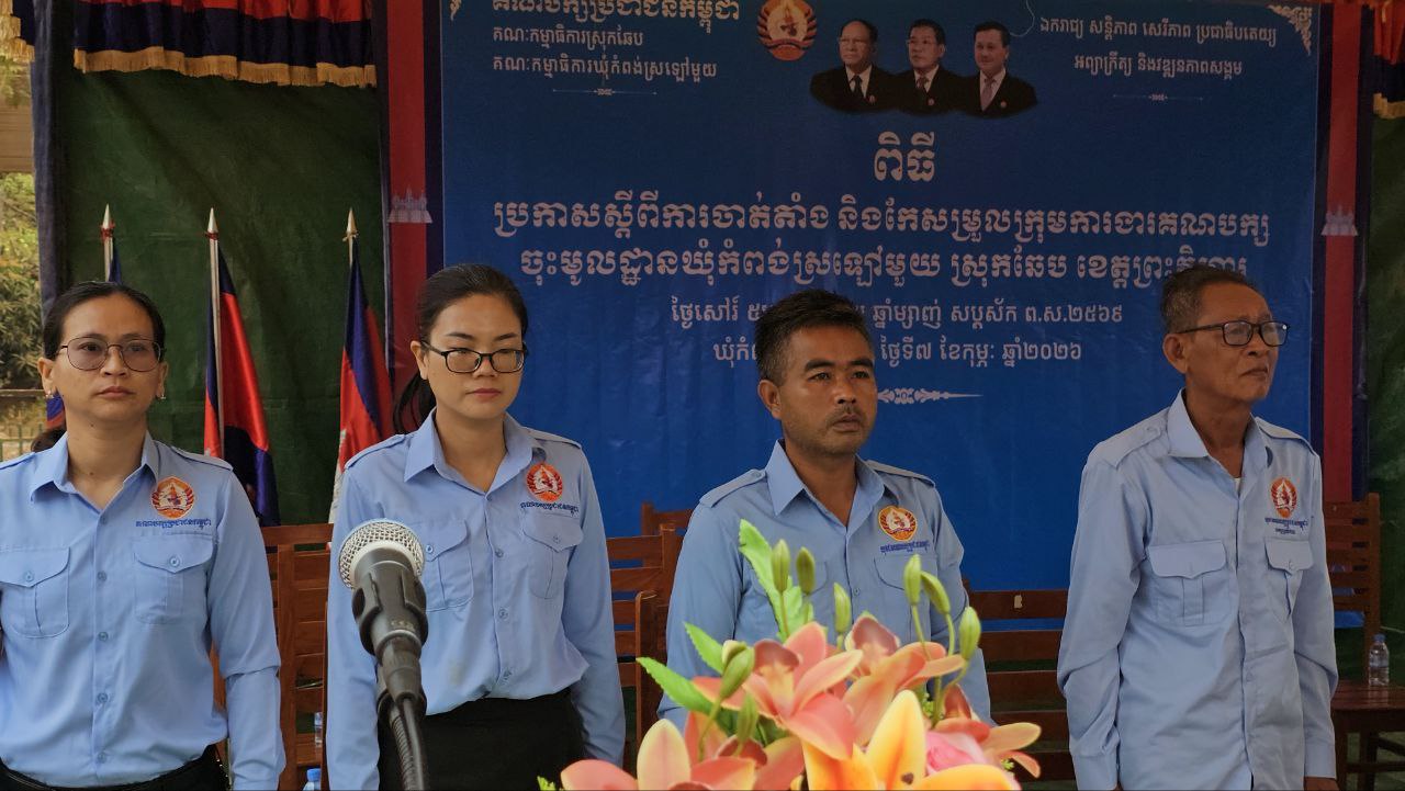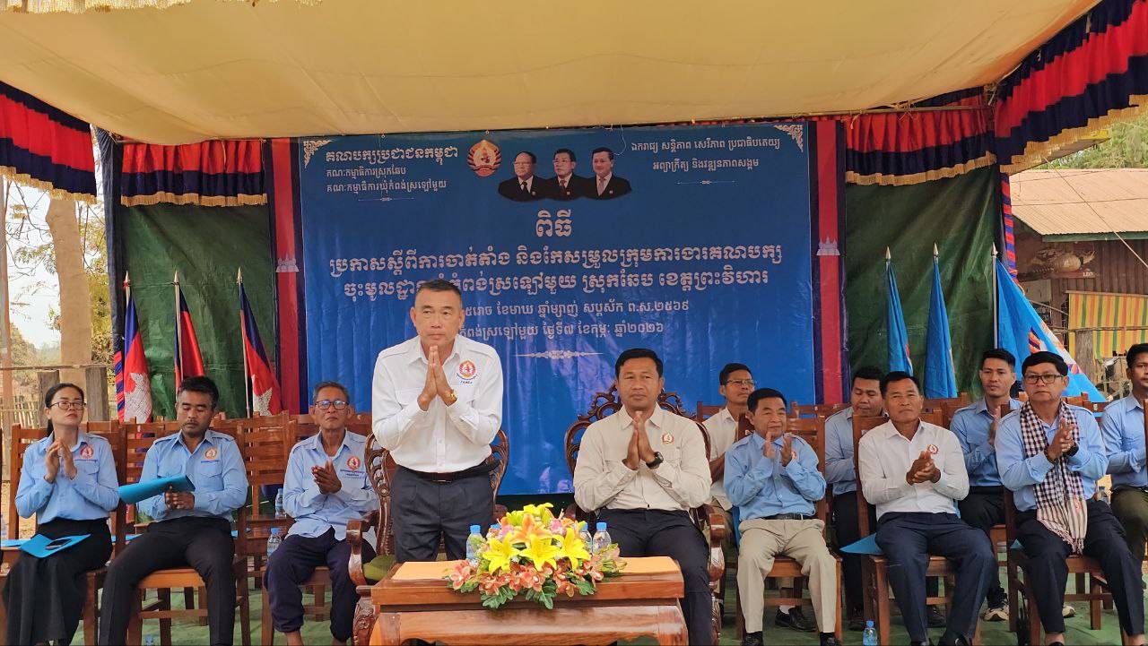 (ព្រះវិហារ)៖ ក្រុមការងារគណបក្សប្រជាជនកម្ពុជា ចុះមូលដ្ឋានឃុំកំពង់ស្រឡៅមួយ ស្រុកឆែប ខេត្តព្រះវិហារ ត្រូវបានប្រកាសចាត់តាំងជាផ្លូវការ នៅព្រឹកថ្ងៃទី៧ ខែកុម្ភៈ ឆ្នាំ២០២៦នេះ ក្រោមវត្តមានលោក សំ លាងទ្រី សមាជិកអចិន្ត្រៃយ៍ គណៈកម្មាធិការគណបក្សប្រជាជនកម្ពុជា ខេត្តព្រះវិហារ និងជាប្រធានក្រុមការងារគណបក្សចុះមូលដ្ឋានស្រុកឆែប និងលោក ឃិត សុធារ៉ា ប្រធានគណបក្សប្រជាជនកម្ពុជាស្រុកឆែប ព្រមទាំងមន្ត្រី និងសមាជិក សមាជិកា គណបក្ស ជាច្រើនរូបទៀត។