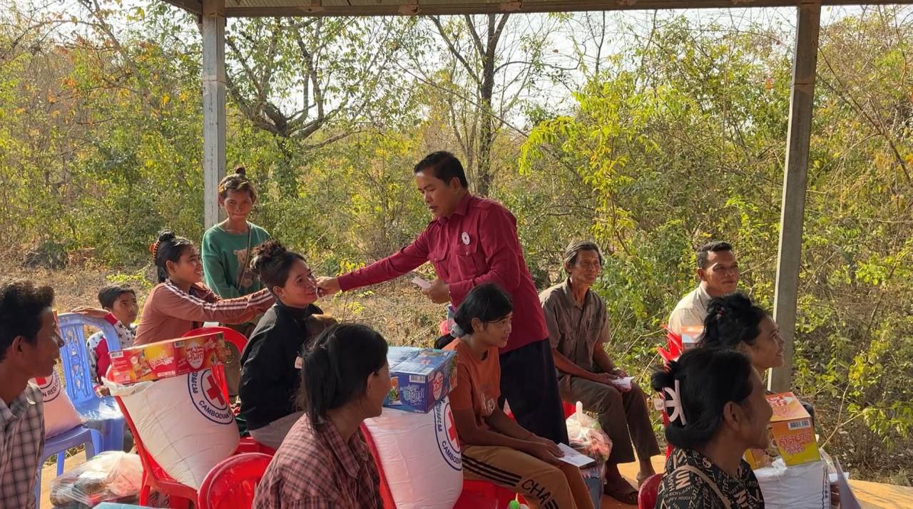 (បាត់ដំបង)៖ លោក ស្រេង សុខា អភិបាលស្រុក និងជាប្រធានគណៈកម្មាធិការអនុសាខាកាកបាទក្រហមកម្ពុជា ស្រុកបាណន់និងសហការី នៅថ្ងៃទី៧ ខែកុម្ភៈ ឆ្នាំ២០២៦ បានអញ្ជើញជួបសំណេះសំណាលសួរសុខទុក្ខ និងនាំយកអំណោយមនុស្សធម៌របស់សប្បុរសជន តាមរយៈអនុសាខាស្រុកផ្តល់ជូនប្រជាពលរដ្ឋងាយរងគ្រោះបំផុតដែលមានជនចាស់ជរា ជនមានពិការភាព កុមាកំព្រា ដែលមានជីវភាពទីទ័លក្រ សរុបចំនួន១៥គ្រួសារ រស់នៅភូមិថ្មី ឃុំតាគ្រាម ស្រុកបាណន់ ខេត្តបាត់ដំបង។