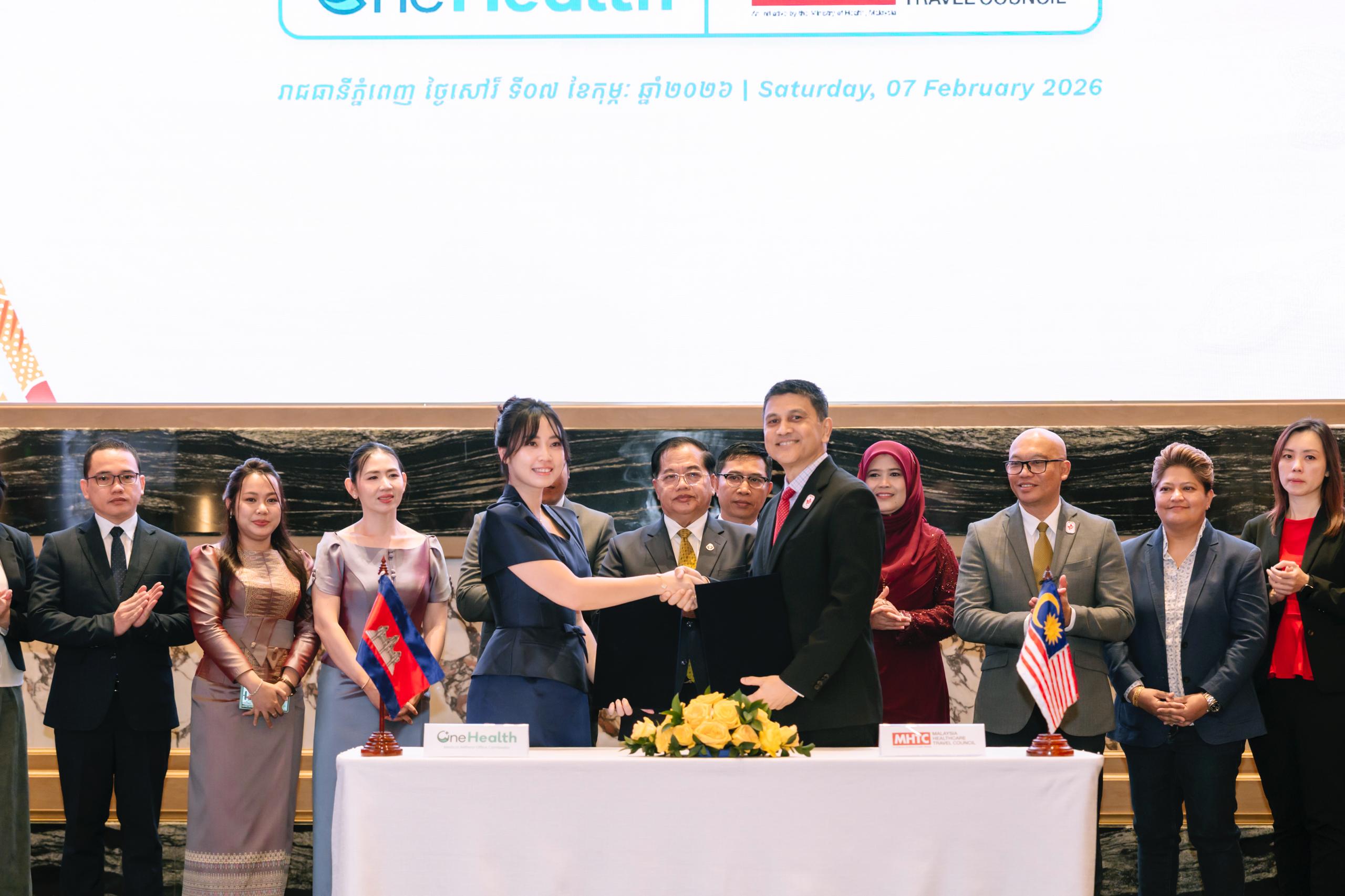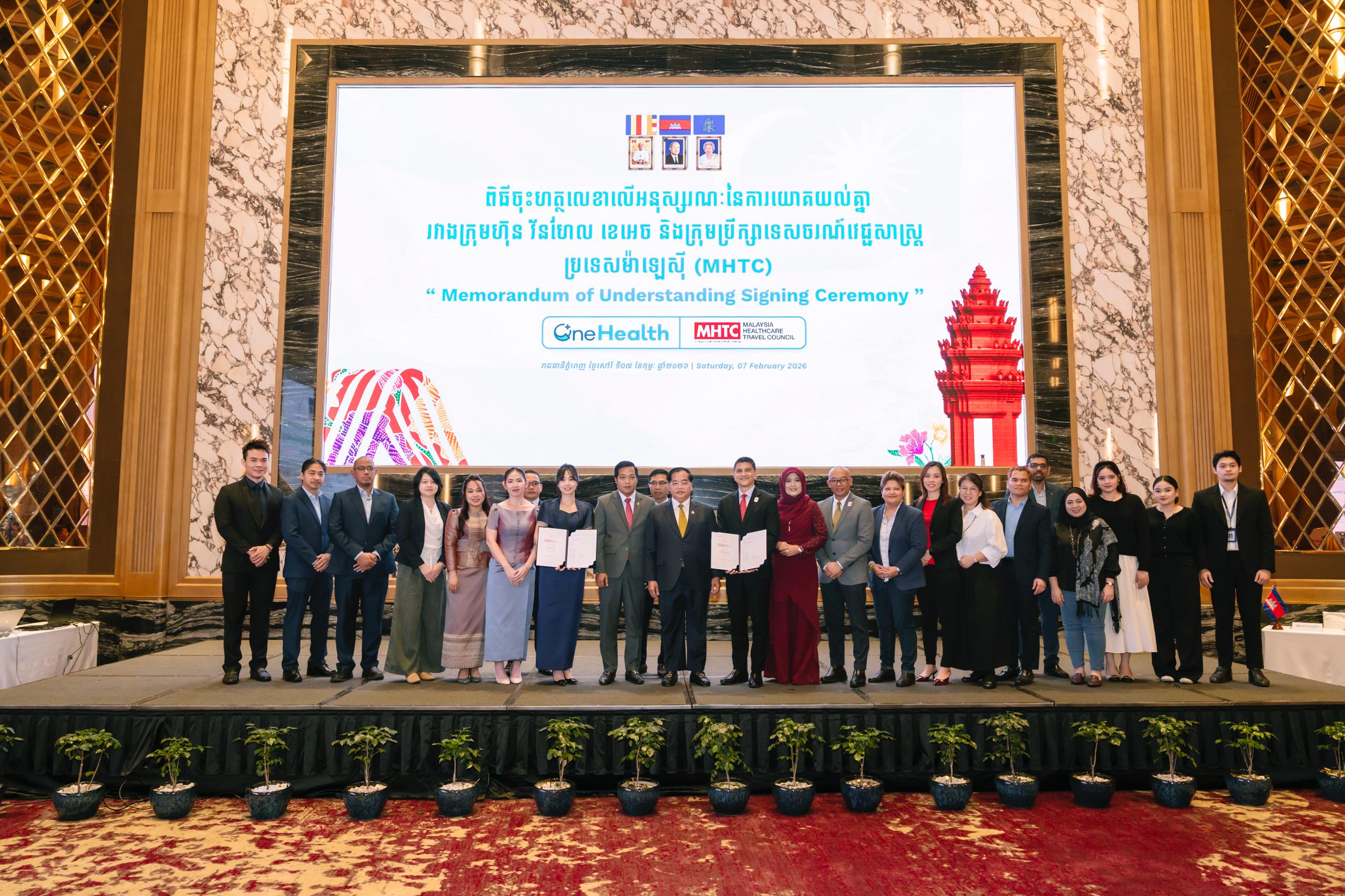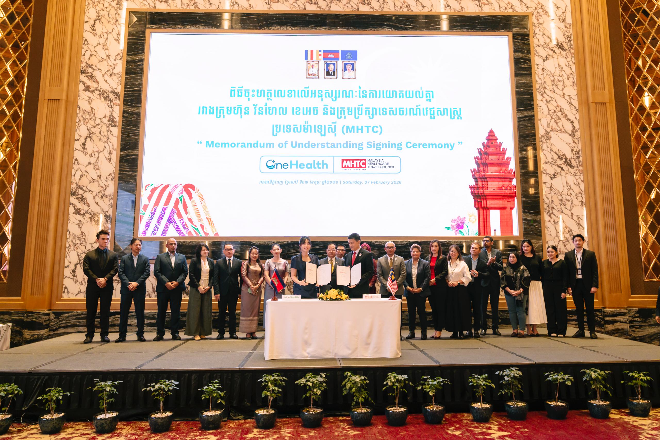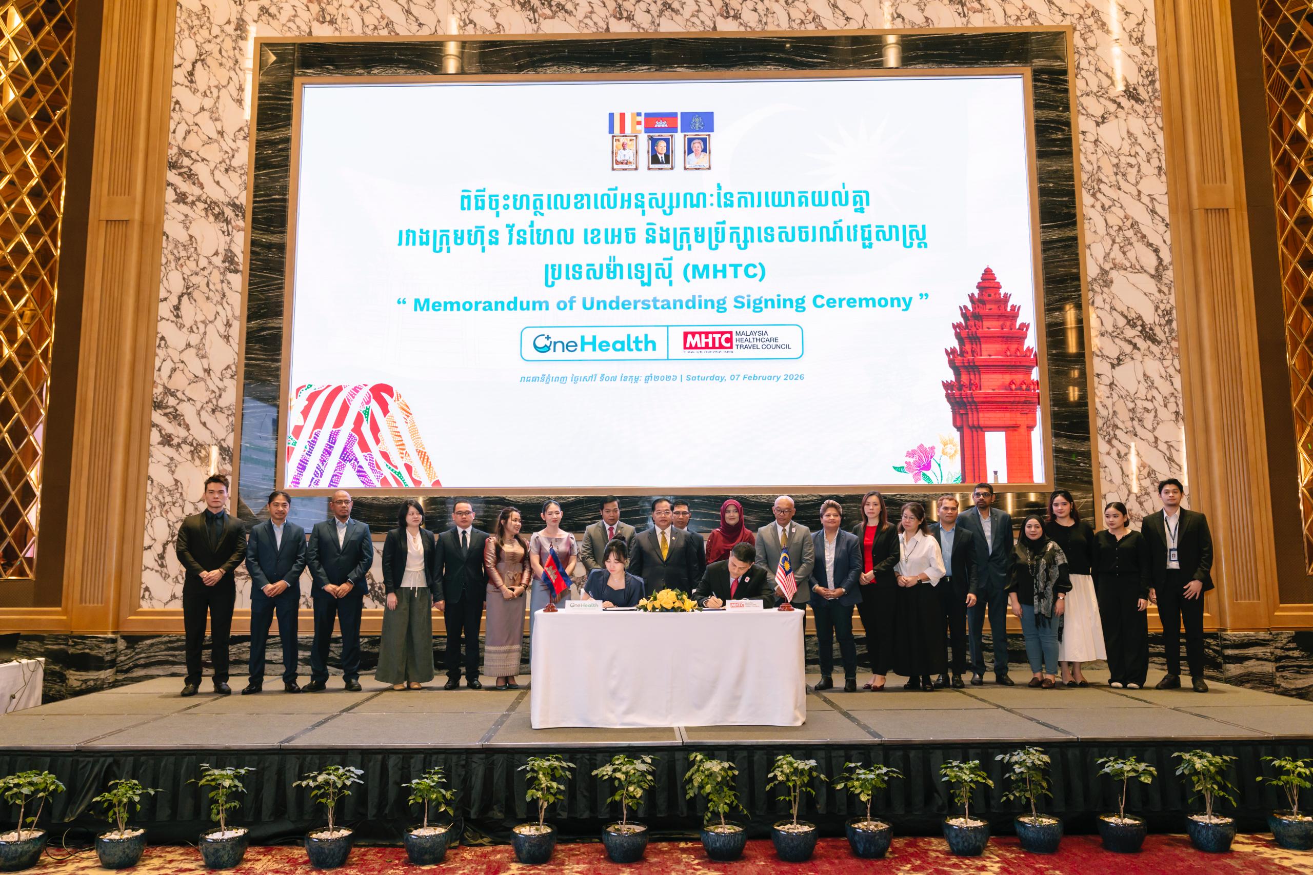 (ភ្នំពេញ)៖ នៅព្រឹកថ្ងៃទី៧ ខែកុម្ភៈ ឆ្នាំ២០២៦ លោកបណ្ឌិត អូស្មាន ហាស្សាន់ ទេសរដ្ឋមន្ត្រីទទួលបន្ទុកបេសកកម្មពិសេស បានអញ្ជើញជាអធិបតីក្នុងពិធីចុះហត្ថលេខា លើអនុស្សរណៈនៃការយោគយល់គ្នា រវាងក្រុមហ៊ុនវ័នហេលខេអេចកម្ពុជា (OneHealth KH Cambodia) និងក្រុមប្រឹក្សាទេសចរណ៍វេជ្ជសាស្ត្រម៉ាឡេស៊ី (MHTC)។