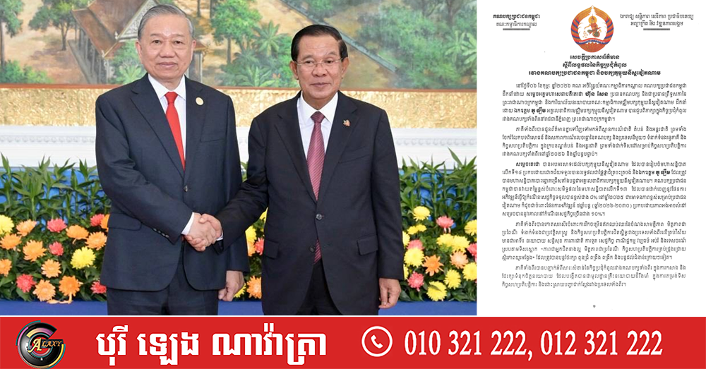 (ភ្នំពេញ)៖ នៅថ្ងៃទី០៦ ខែកុម្ភៈ ឆ្នាំ២០២៦ គណៈអចិន្ត្រៃយ៍គណៈកម្មាធិការកណ្តាល គណបក្សប្រជាជនកម្ពុជា ដឹកនាំដោយ សម្តេចអគ្គមហាសេនាបតីតេជោ ហ៊ុន សែន ប្រធានគណបក្ស និងជាប្រធានព្រឹទ្ធសភានៃ ព្រះរាជាណាចក្រកម្ពុជា និងការិយាល័យនយោបាយគណៈកម្មាធិការមជ្ឈិមបក្សកុម្មុយនីស្តវៀតណាម ដឹកនាំ ដោយ ឯកឧត្តម តូ ឡឺម អគ្គលេខាធិការមជ្ឈិមបក្សកុម្មុយនីស្តវៀតណាម បានជួបពិភាក្សាក្នុងកិច្ចប្រជុំកំពូល រវាងគណបក្សទាំងពីរនៅរាជធានីភ្នំពេញ ព្រះរាជាណាចក្រកម្ពុជា។