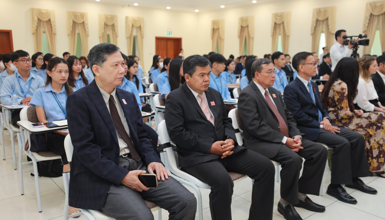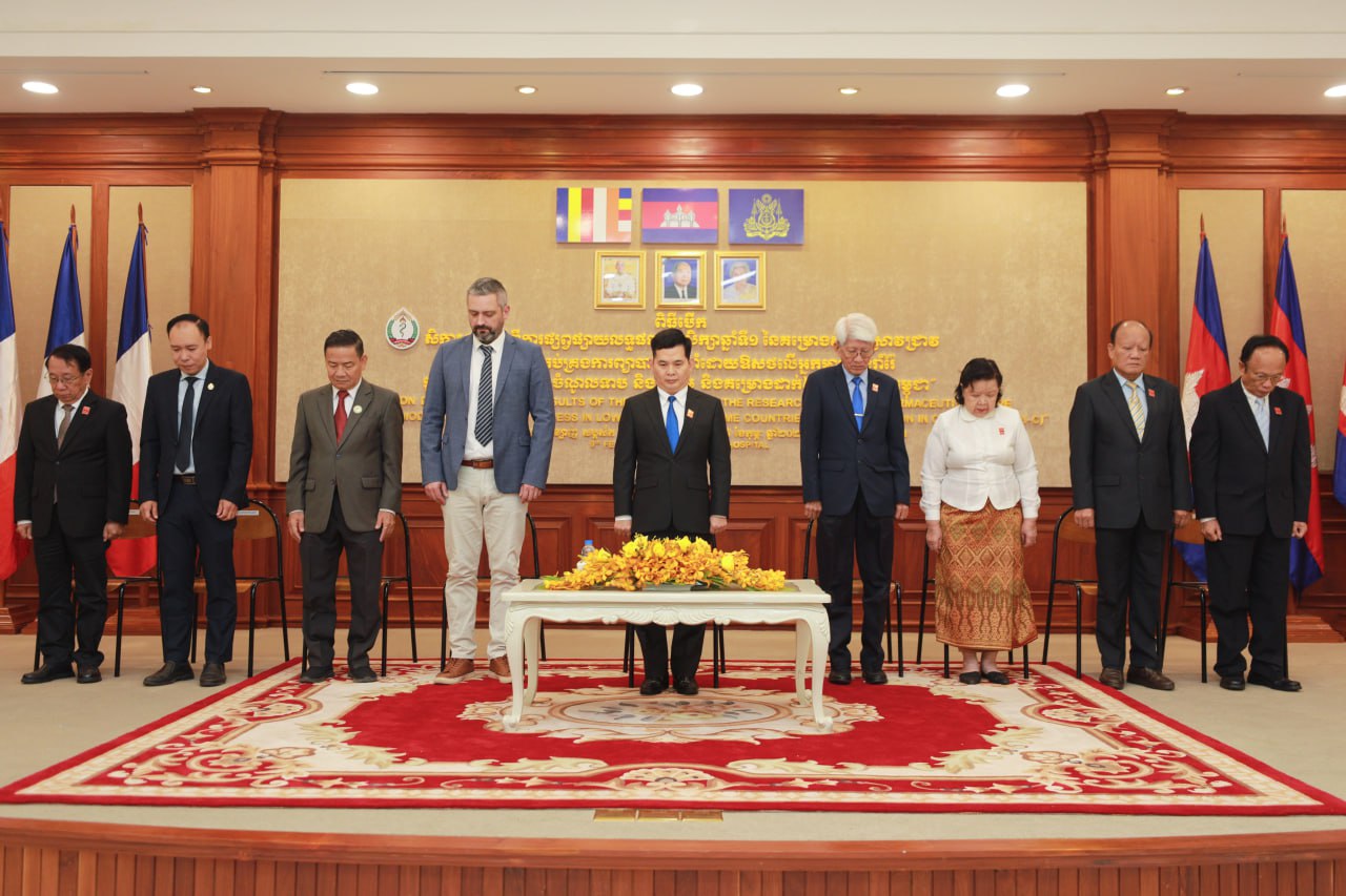 ពិធីនេះបានធ្វើឡើងនៅសាលសន្នីសីទអគារតេជោសន្តិភាព ជាន់ទី៨ ដែលមានការអញ្ជើញចូលរួមពី Monsieur le Professeur JOST Jérémy, éminent professeur en pharmacie clinique, សាស្ត្រាចារ្យ ទីប្រឹក្សា ប្រធានផ្នែក អ៊ុយនីតេ វេជ្ជបណ្ឌិតឯកទេស នាយសាល និងជំនួយការ និងនិស្សិតនៃមហាវិទ្យាឱសថសាស្ត្រជាច្រើនរូប។