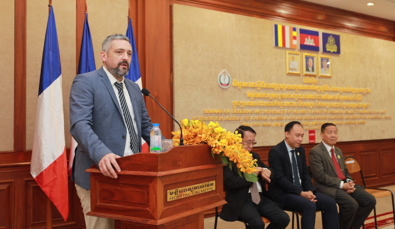 (ភ្នំពេញ)៖ មន្ទីរពេទ្យកាល់ម៉ែត សហការជាមួយសាកលវិទ្យាល័យ Limoges នៃប្រទេសបារាំង នៅព្រឹកថ្ងៃទី៩ ខែកុម្ភៈ ឆ្នាំ២០២៦នេះ បានប្រារព្ធពិធីបើកសិក្ខាសាលាស្តីពីការផ្សព្វផ្សាយលទ្ធផលការសិក្សាឆ្នាំទី១ នៃគម្រោងសិក្សាស្រាវជ្រាវ «គំរូផែនការ គ្រប់គ្រងការព្យាបាលថែទាំដោយឱសថលើអ្នកជំងឺរ៉ាំរ៉ៃ ក្នុងប្រទេសដែលមានចំណូលទាប និងមធ្យម និងគម្រោងដាក់អនុវត្តនៅកម្ពុជា» ក្រោមអធិបតីភាព លោកសាស្ត្រាចារ្យរង វូ សុភៈរស្មី អគ្គនាយករងមន្ទីរពេទ្យកាល់ម៉ែត។