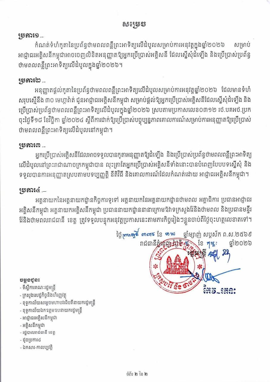 ការអនុញ្ញាតនេះស្របតាមប្រកាសលេខ០៣១២ រថ.បគអថ.ប្រក ចុះថ្ងៃទី១៨ ខែវិច្ឆិកា ឆ្នាំ២០២៤ ស្តីពីការដាក់ឱ្យប្រើប្រាស់បច្ចុប្បន្នភាពគោលការណ៍សម្រាប់ការអនុញ្ញាតឱ្យប្រើប្រាស់ ថាមពលពន្លឺព្រះអាទិត្យលើដំបូលនៅកម្ពុជា។