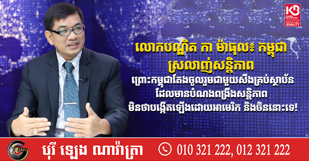 លោកបណ្ឌិត កា ម៉ាធុល៖ កម្ពុជា ស្រលាញ់សន្តិភាព ព្រោះកម្ពុជាតែងចូលរួមជាមួយសឹងគ្រប់ស្ថាប័នដែលមានបំណងពង្រឹងសន្តិភាព មិនថាបង្កើតឡើងដោយអាមេរិក និងចិននោះទេ!