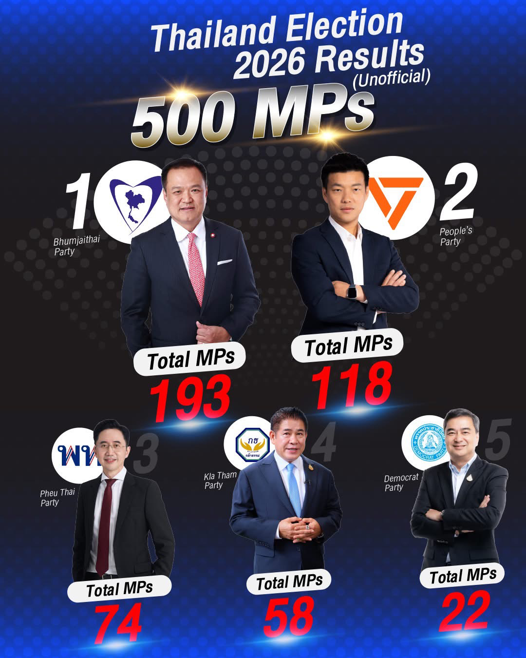 ២. គណបក្សប្រជាជនថៃទទួលបានអាសនៈ១១៨