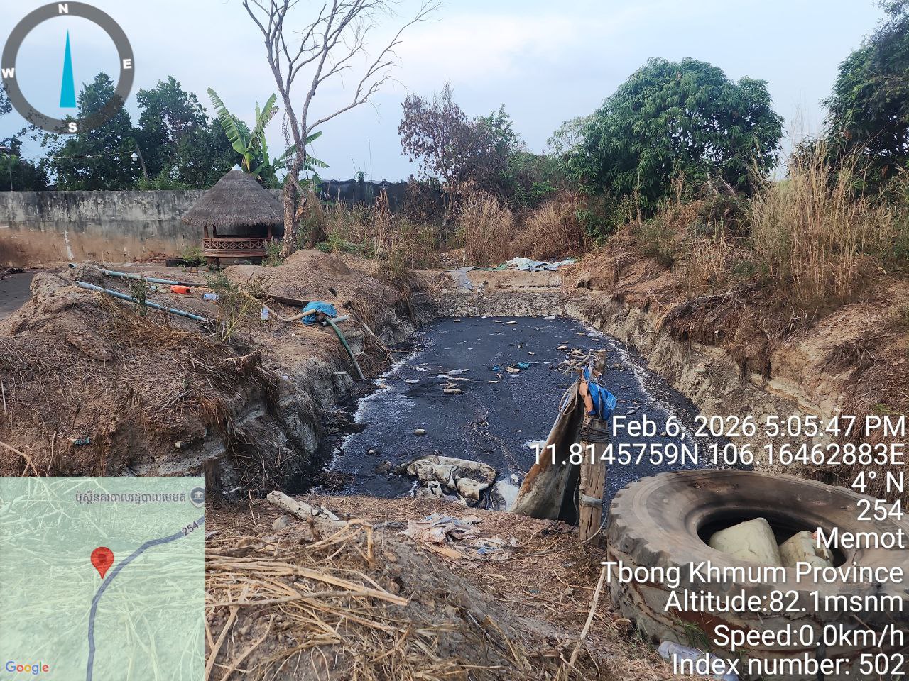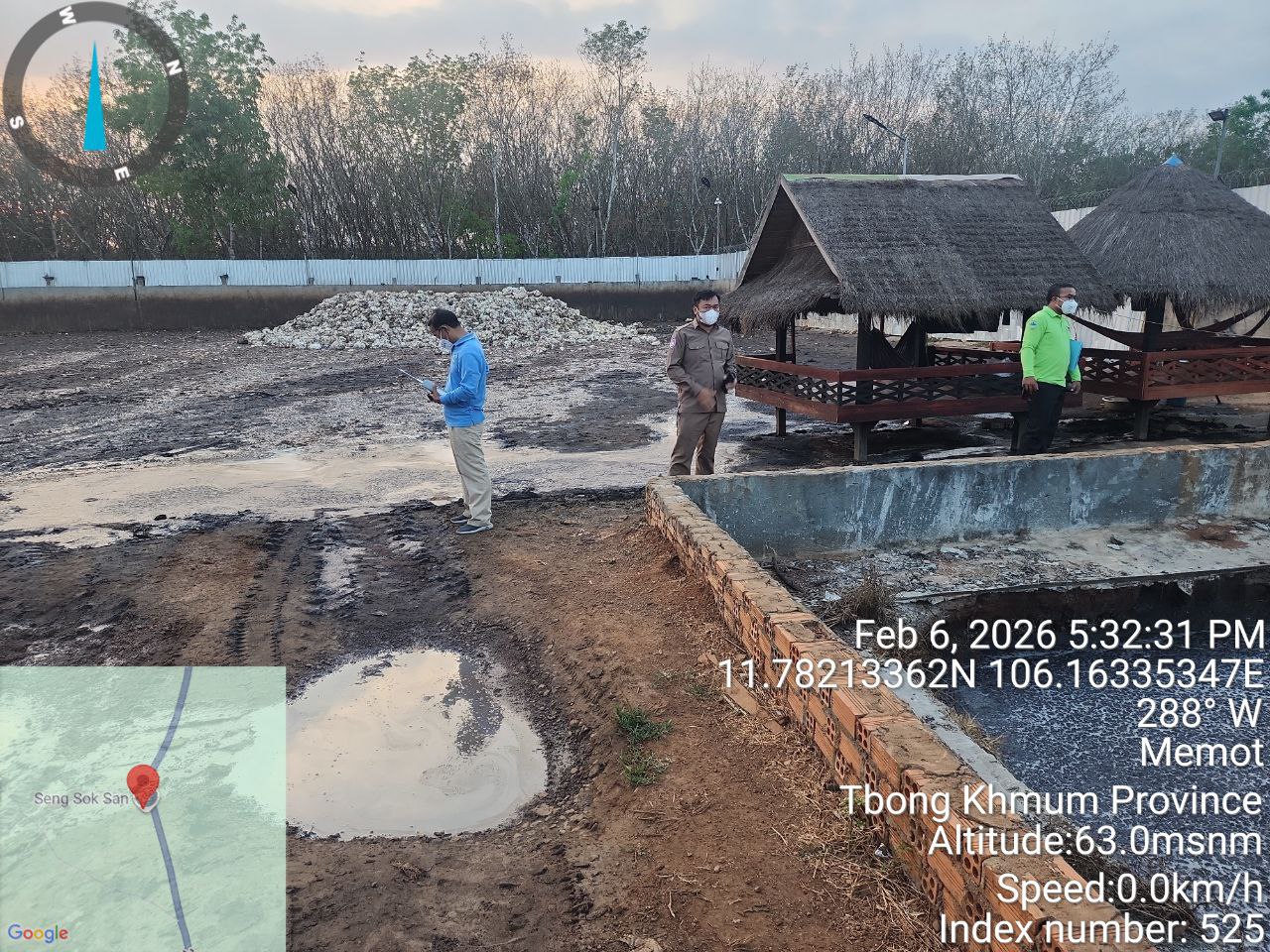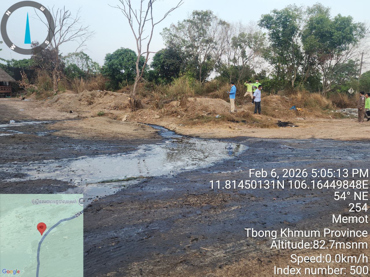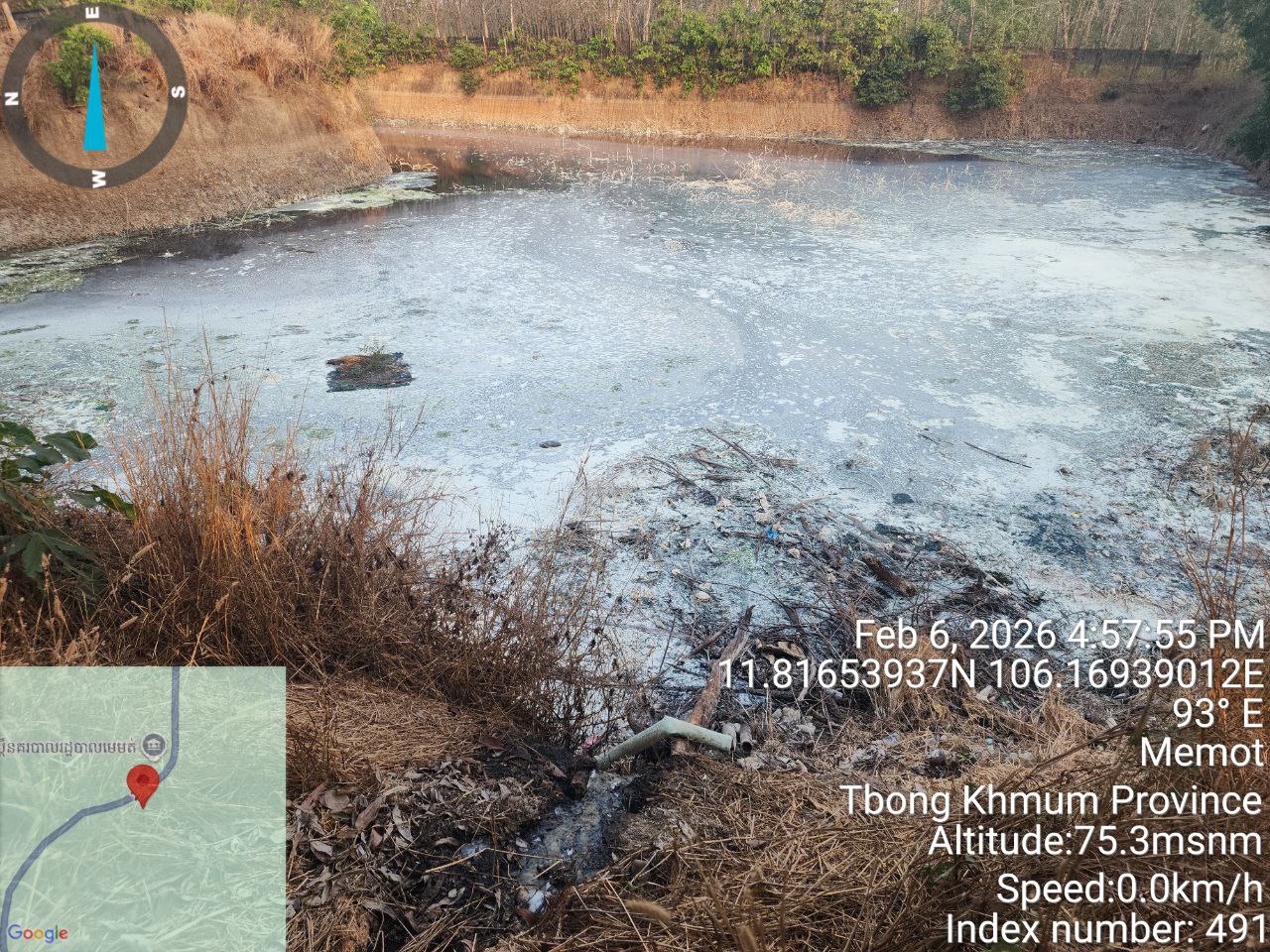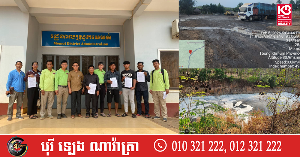 (ត្បូងឃ្មុំ)៖ បន្ទាប់ពីមានសេចក្តីរាយការណ៍ពីប្រជាពលរដ្ឋ នៅថ្ងៃទី៦-៧ ខែកុម្ភៈ ឆ្នាំ២០២៦ ក្រុមការងារអធិការកិច្ច នៃអគ្គនាយកដ្ឋានគាំពារបរិស្ថាន ដឹកនាំដោយលោក ចាប យុធី អនុប្រធាននាយកដ្ឋាន ដោយមានការចូលរួមពីមន្ទីរបរិស្ថាន ខេត្តត្បូងឃ្មុំ រដ្ឋបាលស្រុកមេមត់ និងអាជ្ញាធរឃុំមេមត់ បានចុះត្រួតពិនិត្យ និងបានរកឃើញបញ្ហាបំពុលបរិស្ថាន និងចំណុចខ្វះខាតរបស់ទីតាំងអាជីវកម្មក្រុមហ៊ុនប្រមូលទិញជ័រកៅស៊ូបង្កកទាំង ៥ទីតាំង នៅក្នុងស្រុកមេមត់ ខេត្តត្បូងឃ្មុំ បានបង្កបញ្ហាក្លិនអាក្រក់ ចេញពីកន្លែងជ័រកៅស៊ូបង្កក និងពីរណ្តៅស្តុកសំណល់រាវ (ទឹកលាងសម្អាតក្នុងទីតាំងស្តុក)។