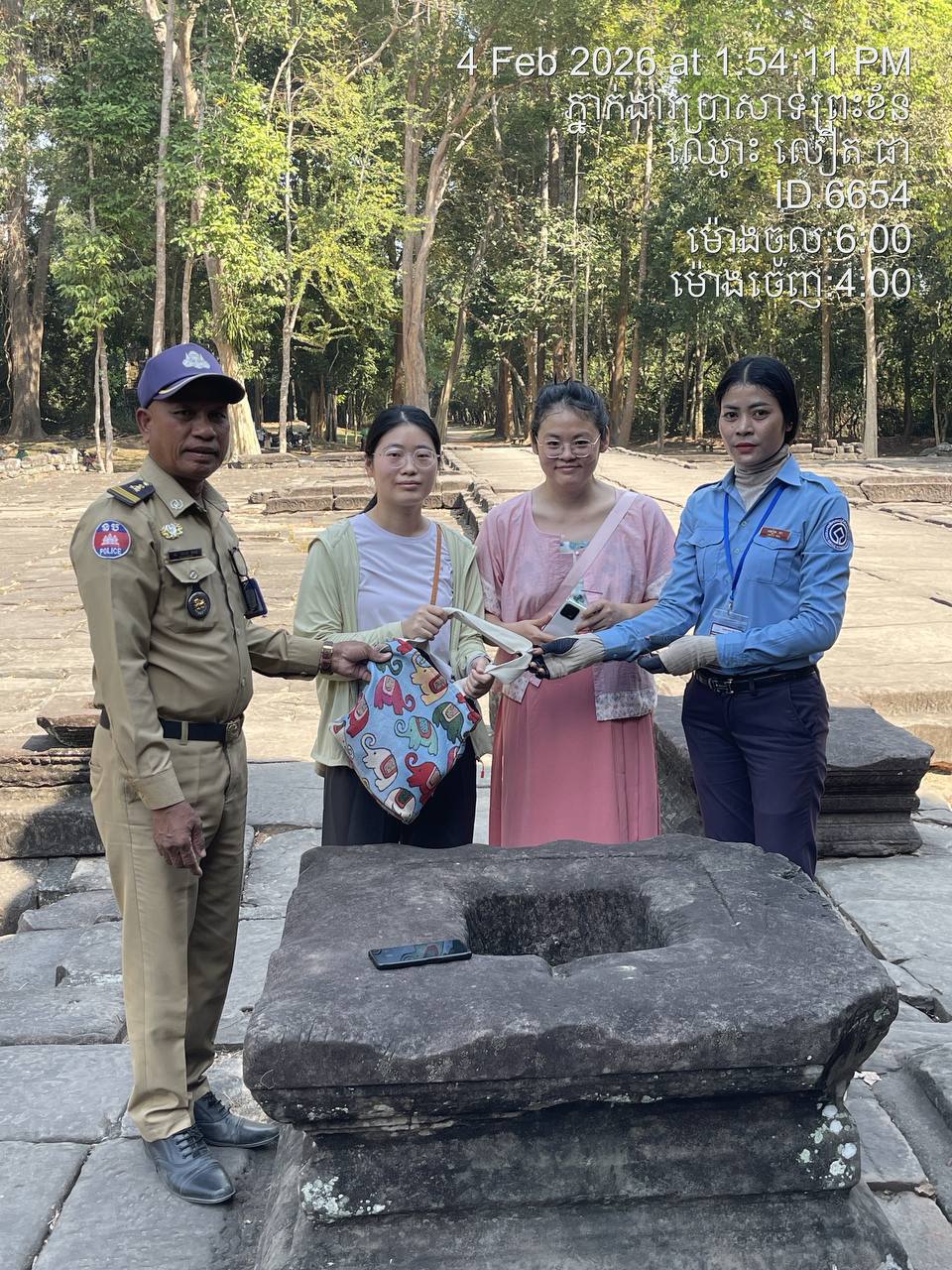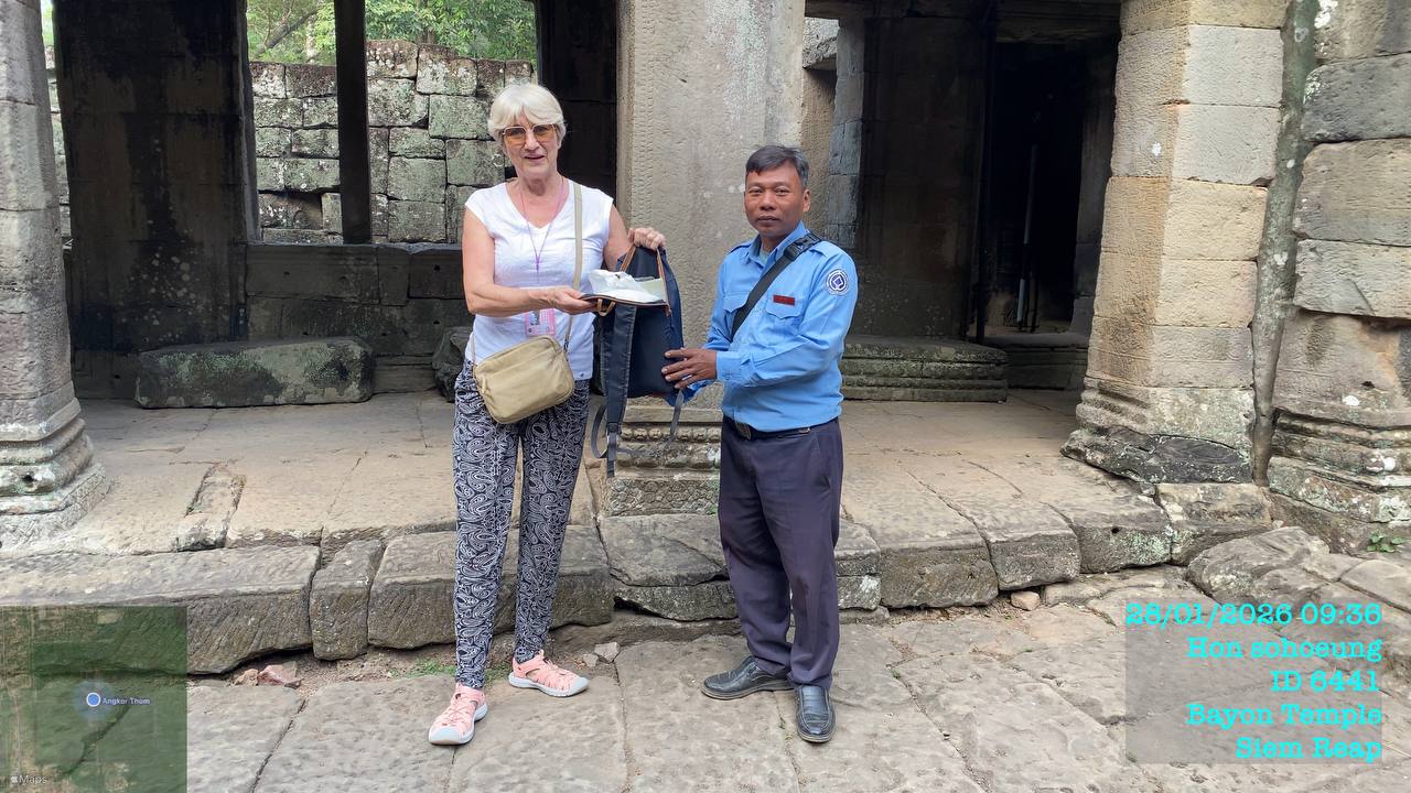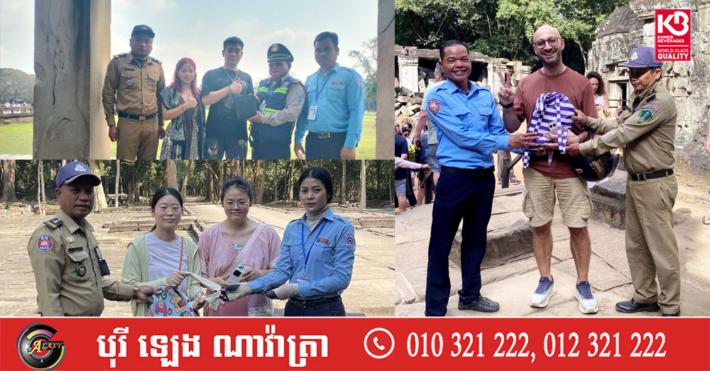 (សៀមរាប)៖ នៅក្នុងខែមករា ឆ្នាំ២០២៦ ក្រុមការងារភ្នាក់ងារទេសចរណ៍របស់អាជ្ញាធរជាតិអប្សរា ដែលប្រចាំការនៅតាមគោលដៅនីមួយៗ នៅក្នុងរមណីយដ្ឋានអង្គរ បានសហការ ជាមួយនគរបាលការពារបេតិកភណ្ឌ នគរបាលទេសចរណ៍ រួមទាំងភ្នាក់ងារសណ្តាប់ធ្នាប់ ក្នុងការស្វែងរកម្ចាស់សម្ភារ និងប្រគល់ជូនទៅម្ចាស់ដើមវិញ ដែលបានភ្លេច ឬជ្រុះកំលុងពេលទស្សនាតាមប្រាសាទនានា មានចំនួន៤០ករណី។